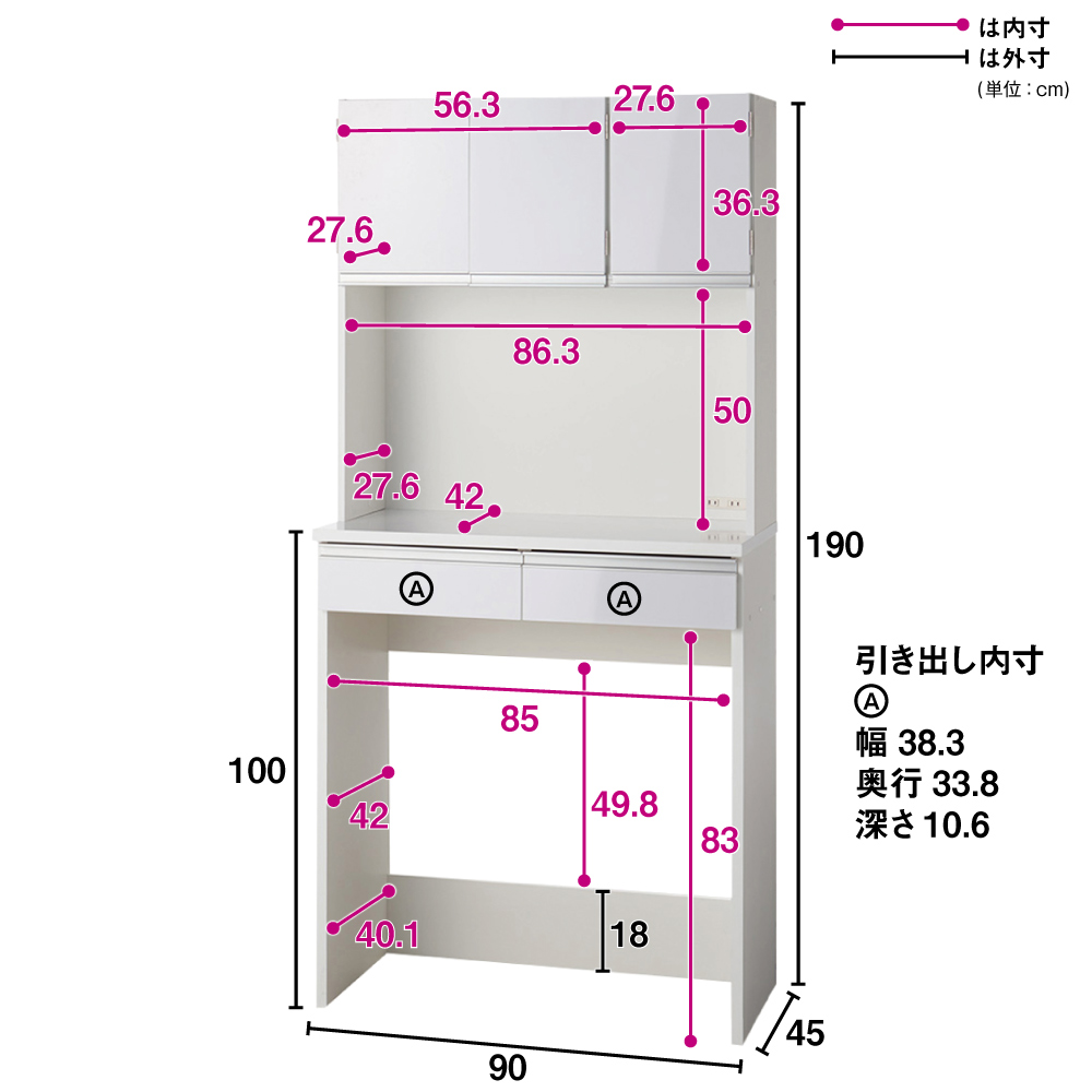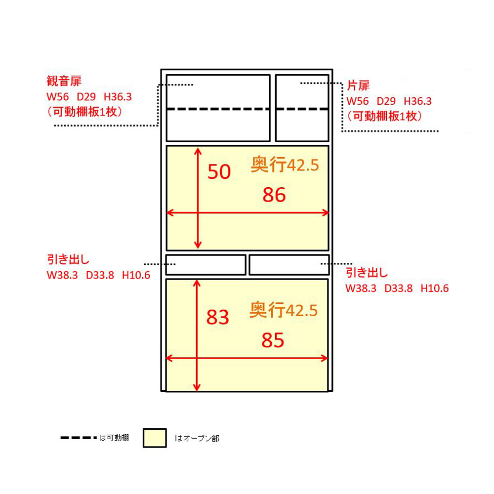 ※オープン部奥行内寸(単位:cm)中天板42.5cm