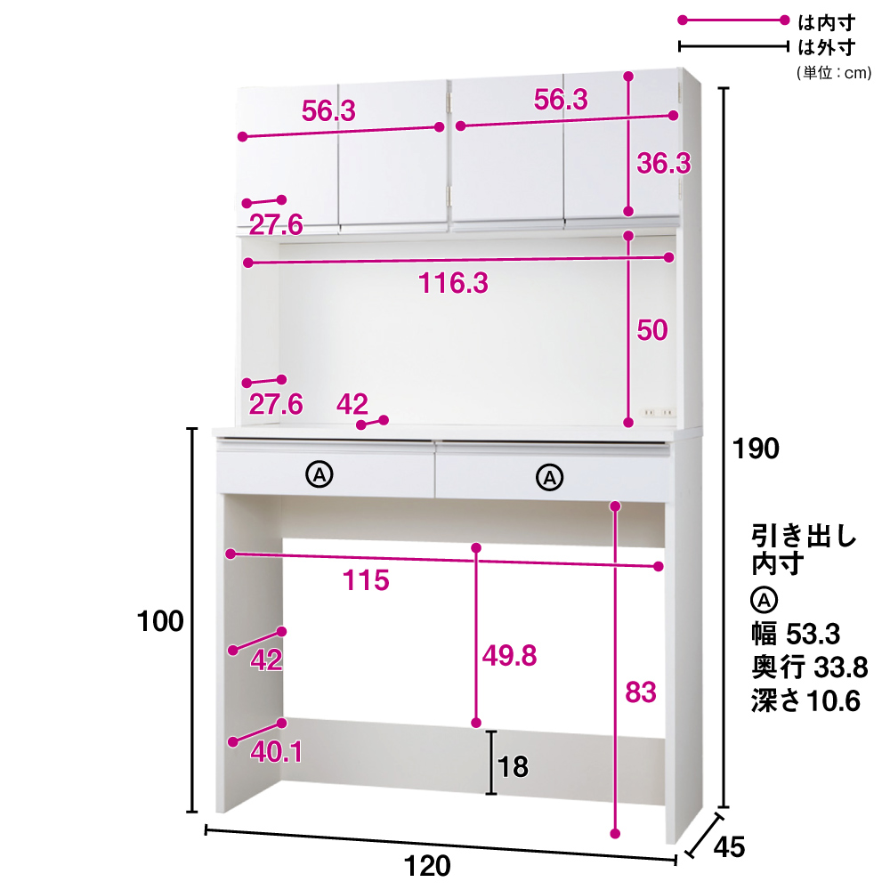 キッチンボード幅120高さ190cm(お届け商品のサイズ)