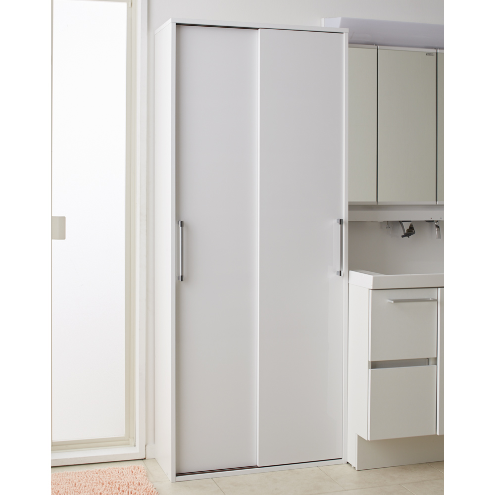 すっきり隠せる薄型引き戸収納庫 幅67.5cm 洗面所収納 隙間収納 トイレ 洗面所 ランドリー収納 631131