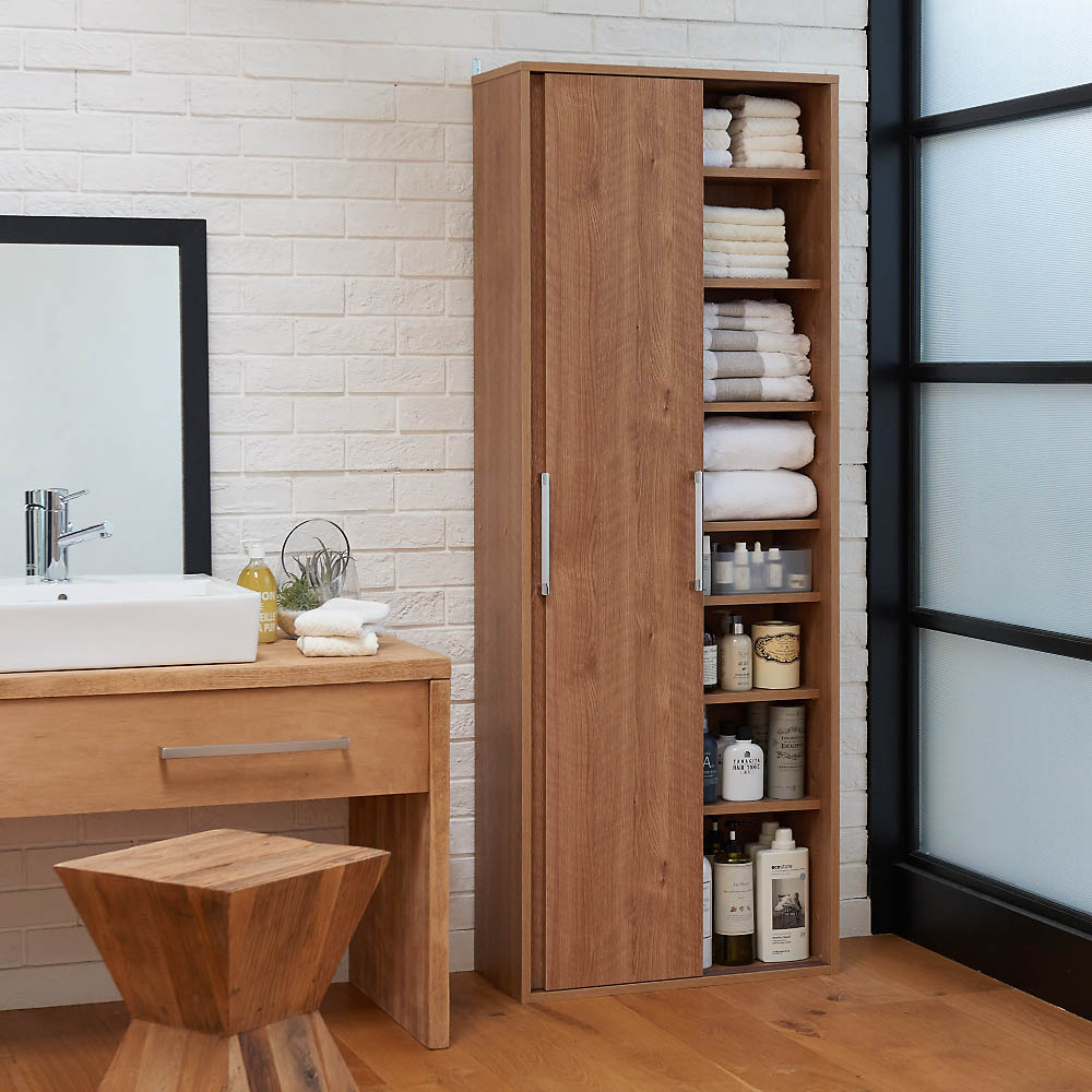 背の高いボトルから、リネン系や洗面小物まで大容量に収納。(※写真は幅90cmタイプ)