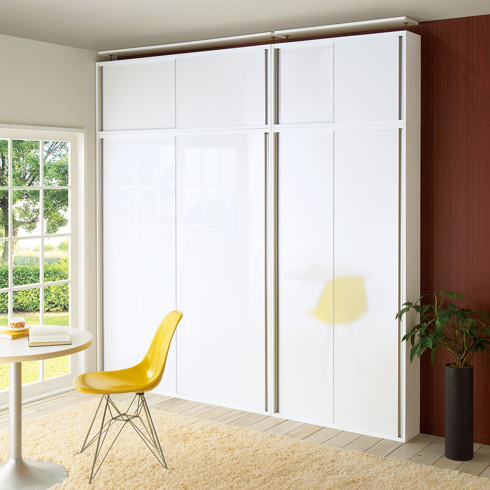 ◆シリーズを組み合わせれば、統一感ある天井いっぱいの壁面収納が完成します。