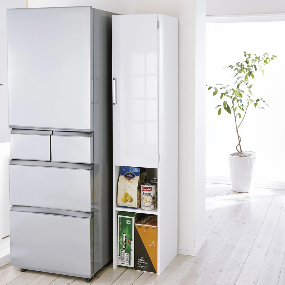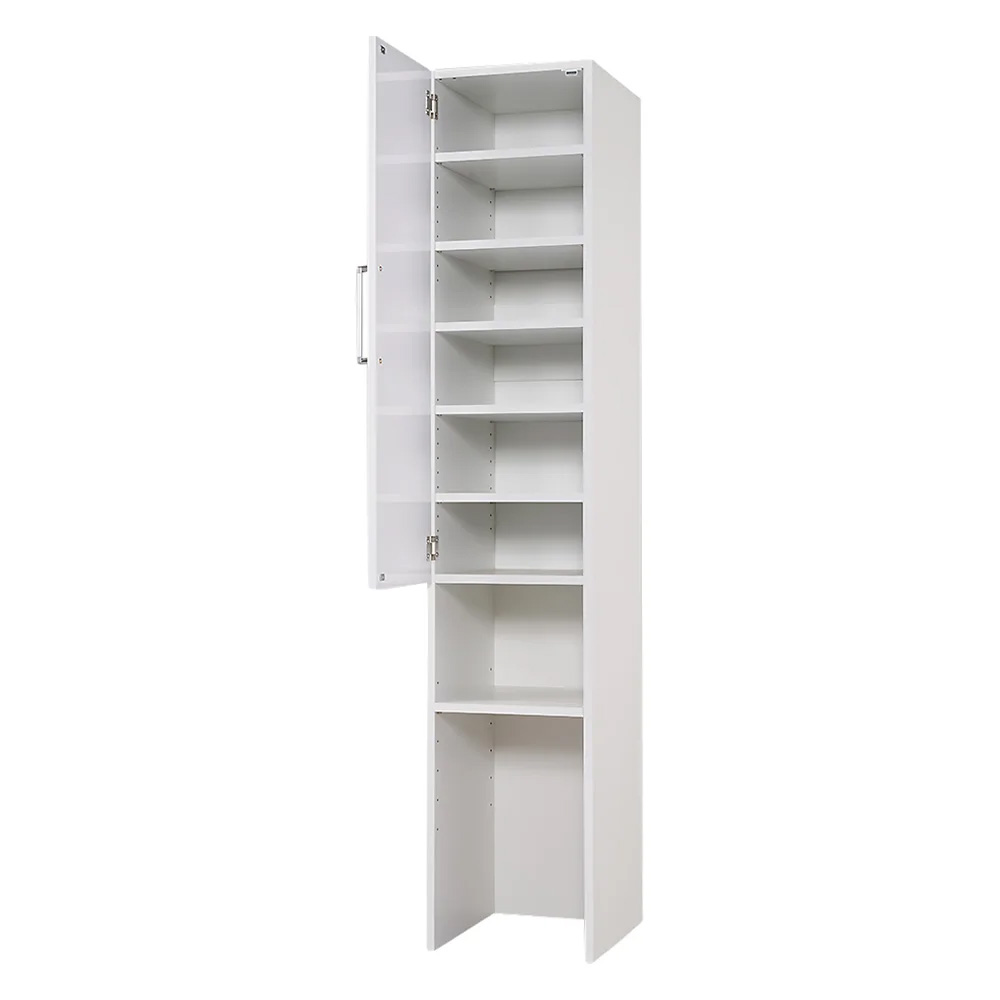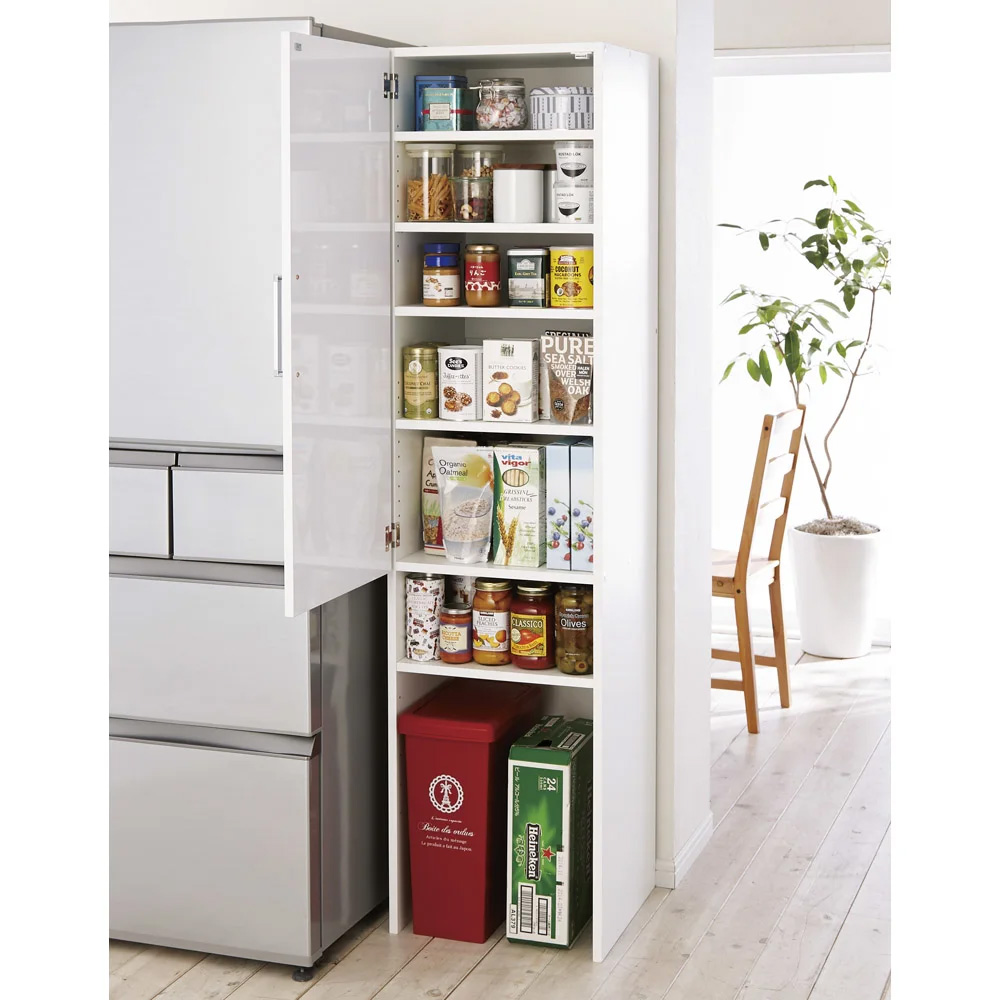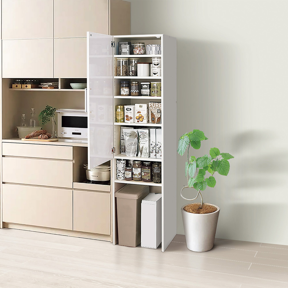 (左開き取付時)※写真は幅45cmタイプです。 ※引っ越しや模様替えなど、生活環境や用途の変化にも馴染み、圧迫感も少ないホワイト色。お手持ちの食器棚と並べても馴染むデザインです。