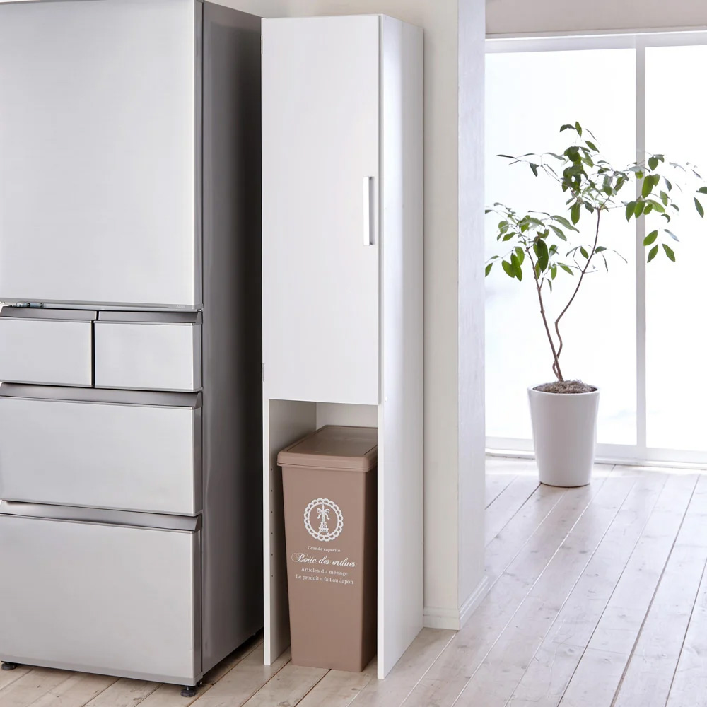 ◆デッドスペースになりがちなゴミ箱の上にもたっぷりの収納スペースを確保しました。◆幅25~45cmまでの5cm刻みで、キッチンのちょっとしたスペースにもぴったり収まります。