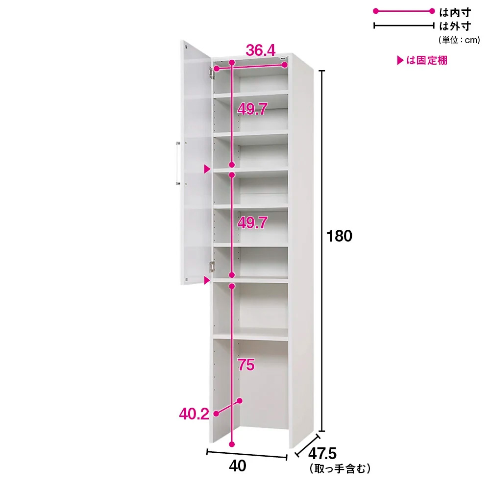 ■サイズ:幅40奥行(本体は44.5、取っ手2.8cm)高さ180cm