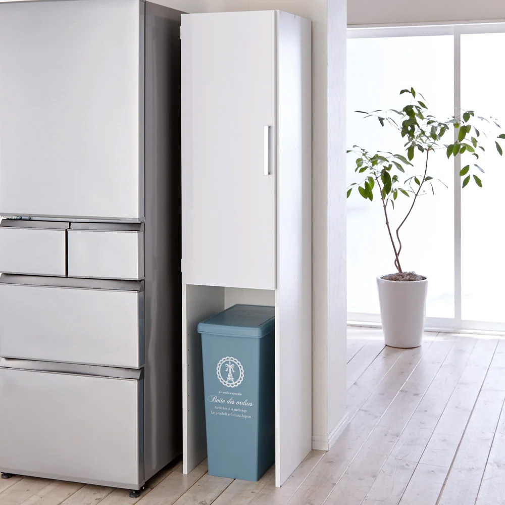 ◆デッドスペースになりがちなゴミ箱の上にもたっぷりの収納スペースを確保しました。◆幅25~45cmまでの5cm刻みで、キッチンのちょっとしたスペースにもぴったり収まります。