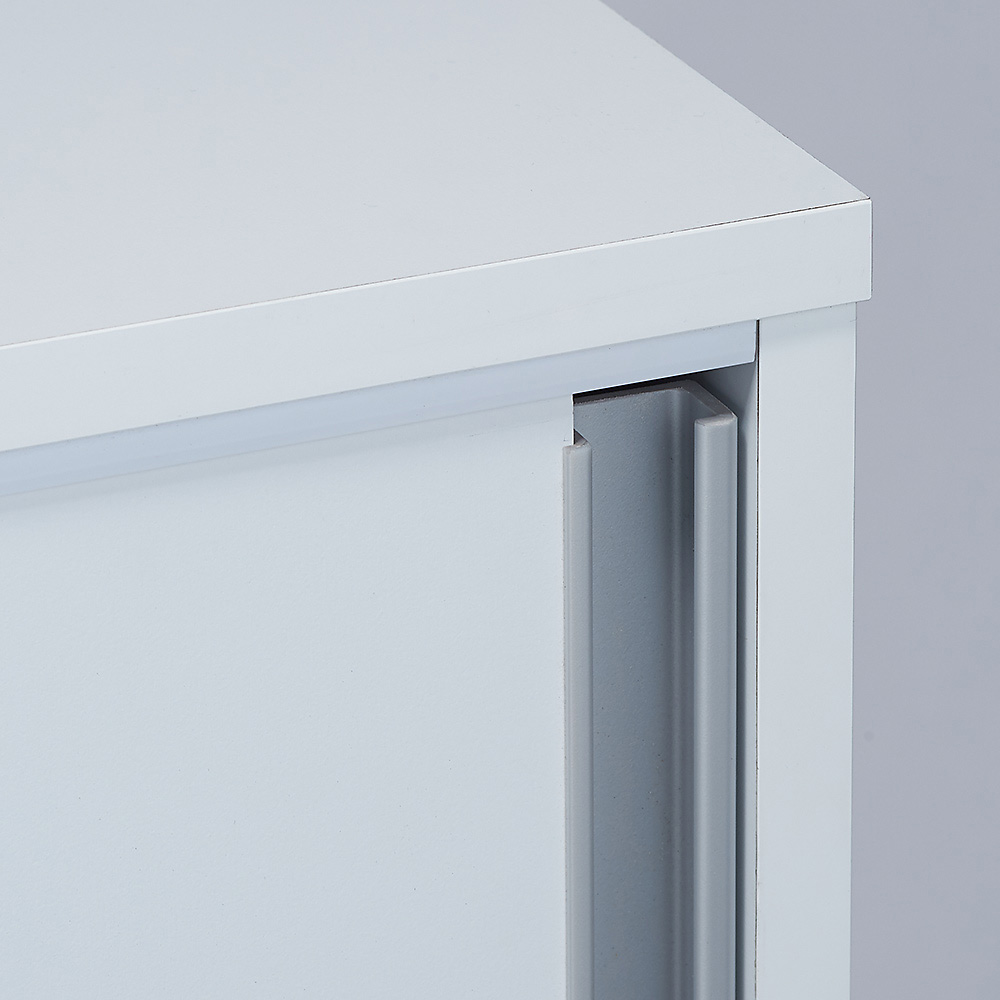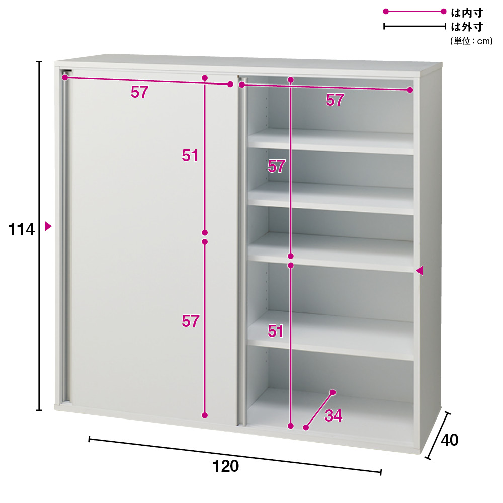 扉は前に出ない引き戸なのでせまい廊下や、リビングでもスペースを取らず開閉ができます。※(ア)ブラウン 手前から幅120cm高さ114cm、幅90cm高さ114cmタイプです ※写真のモデル身長164cm
