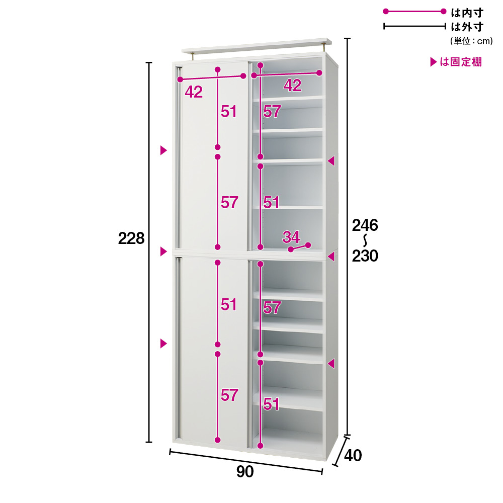 ■サイズ:幅90奥行40本体高さ228cm、天井対応高さ230~246cm