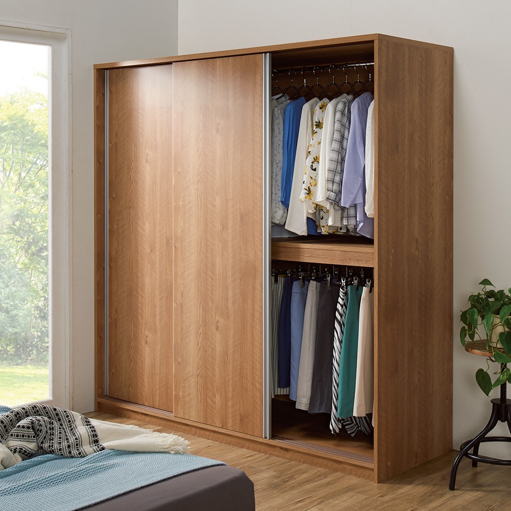 ●驚きの大容量で、家族の衣類もまとめて収納できる引き戸式ワードローブ。●シャツやジャケット、ロングコートまでまとめて収納出来ます。
