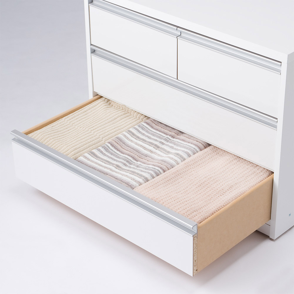 大引き出し収納例:衣類や大きめのタオル、シーツなどの整理にピッタリです。