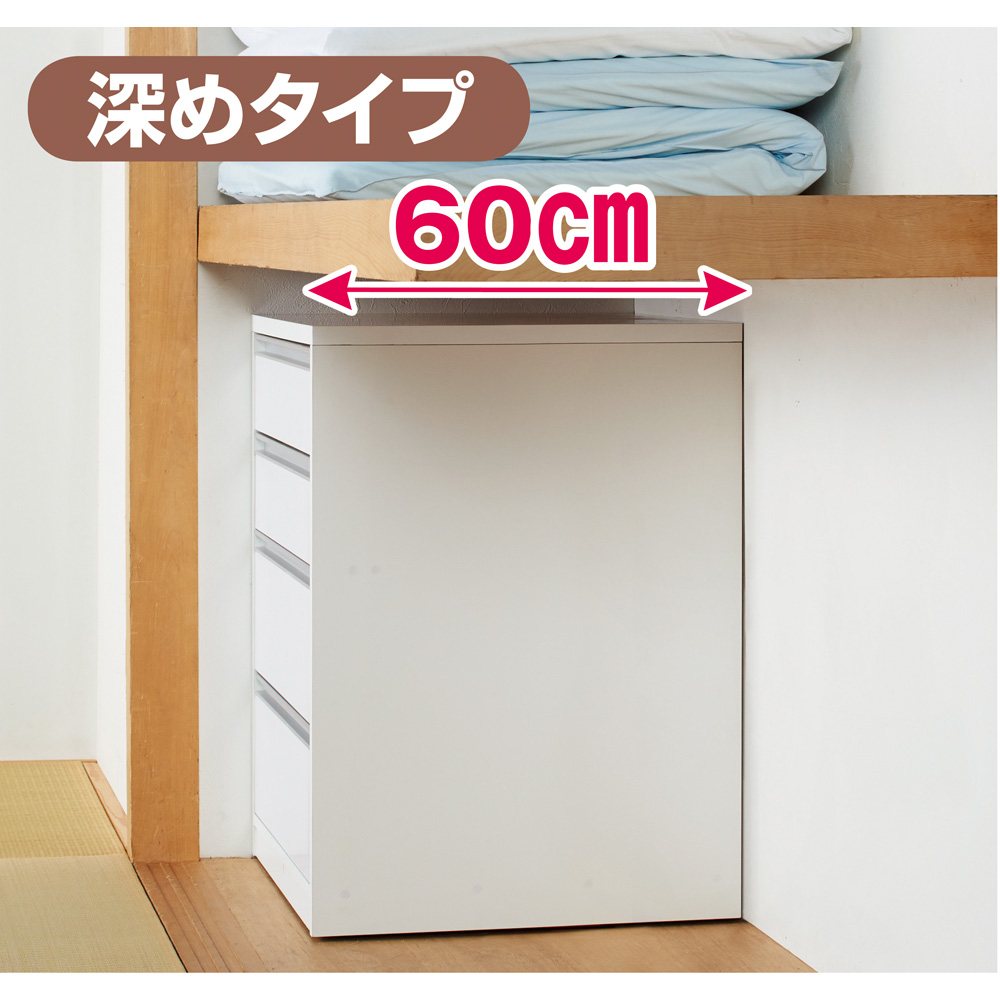 奥行が60cmあるので、奥行の深い押入れにも使えます。商品画像の説明