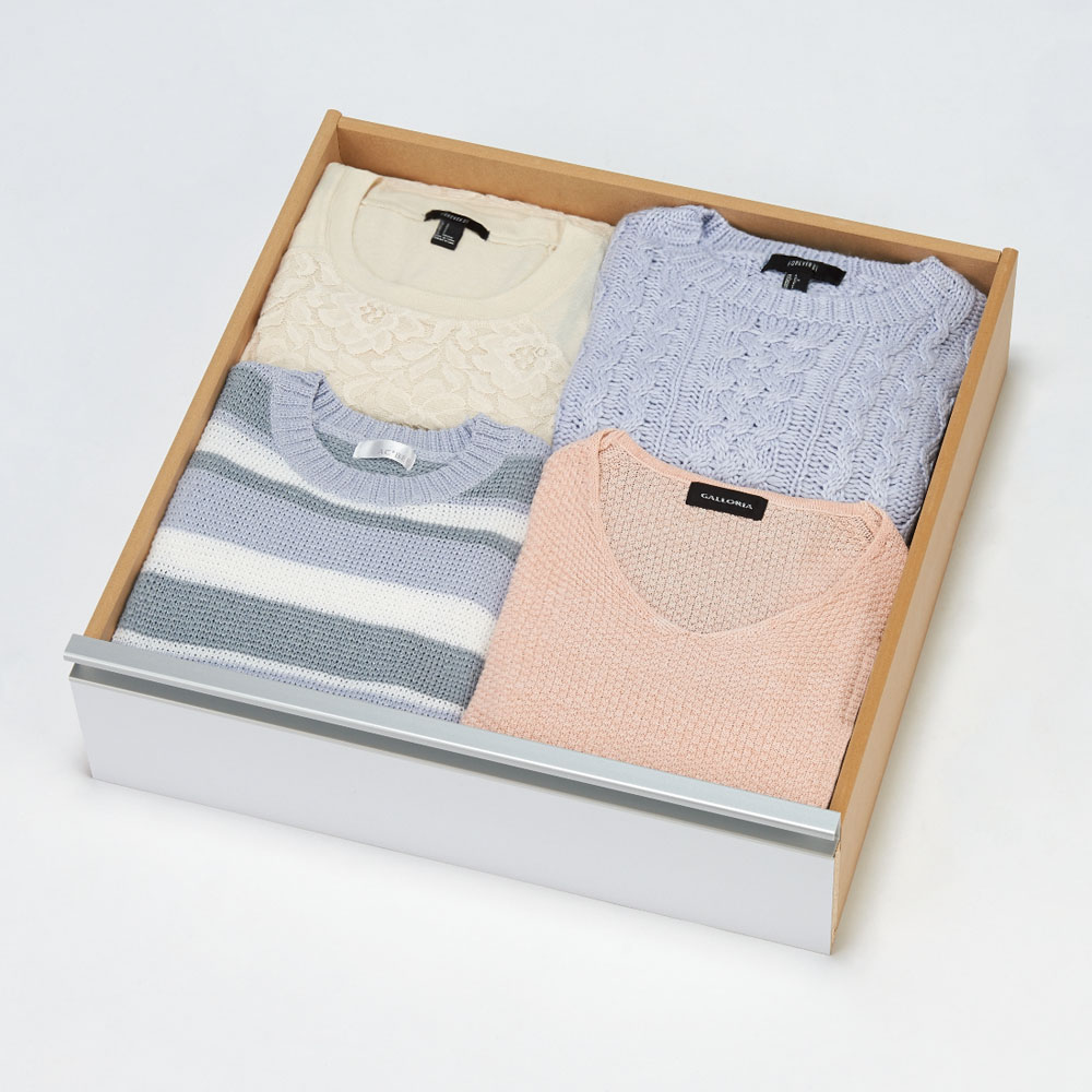 小引き出し収納例:ハンドタオルやハンカチ、下着類などの整理にピッタリです。