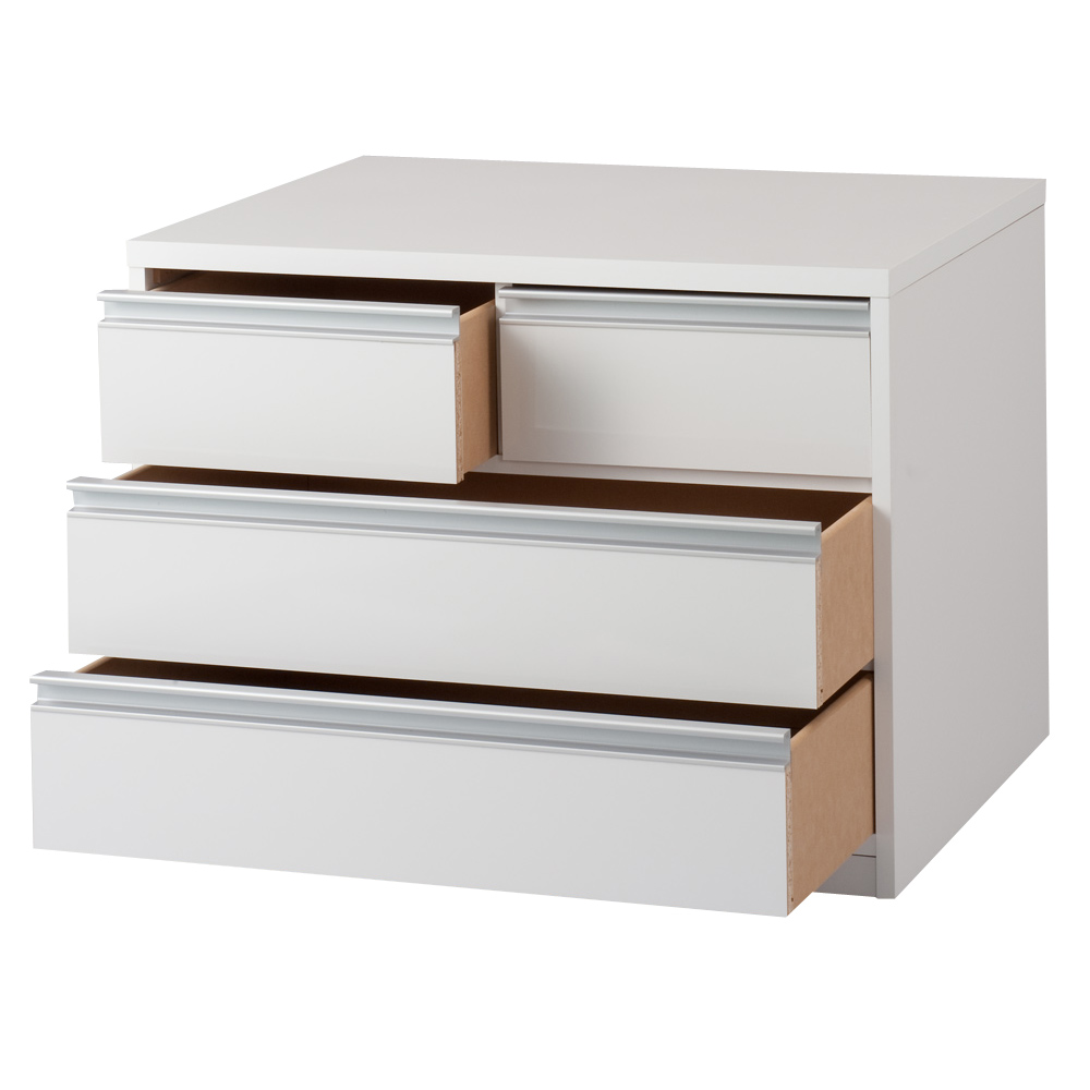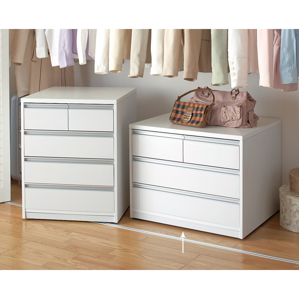前面・天板の光沢感が美しい、隠しキャスター付きクローゼットチェスト。