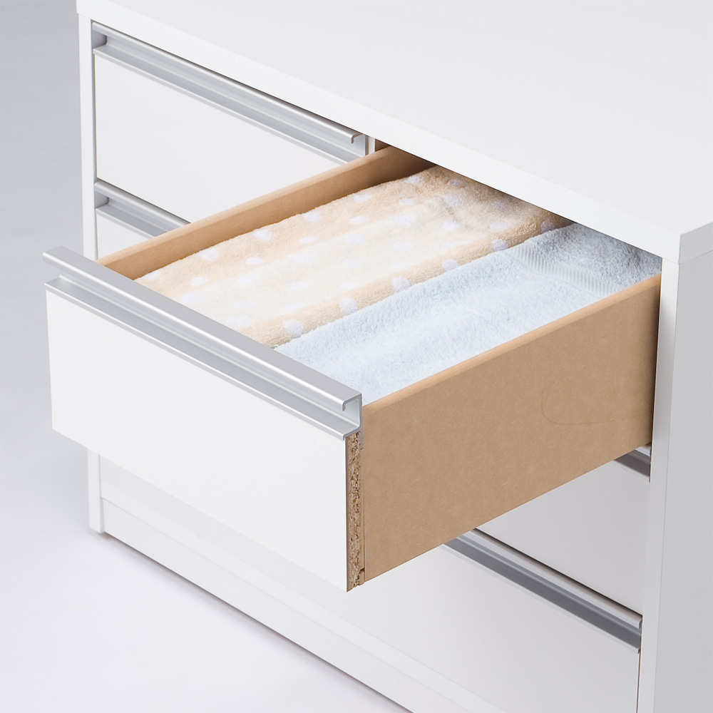 引き出しを抜いた状態。引き出し間は奥までしっかり地板が入っている総地板仕様。(引き出し開閉時に衣類が引っ掛かりにくい仕様です。)