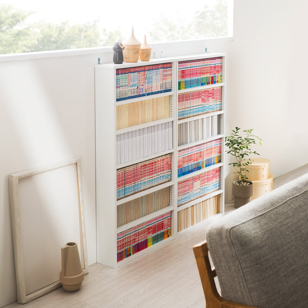 ●奥行15cm、最小限の薄型で圧迫感を出さずにコミックを大量収納できます。●1.5cmピッチの棚板調整が可能で、判型の異なるコミックも効率的に収納できます。