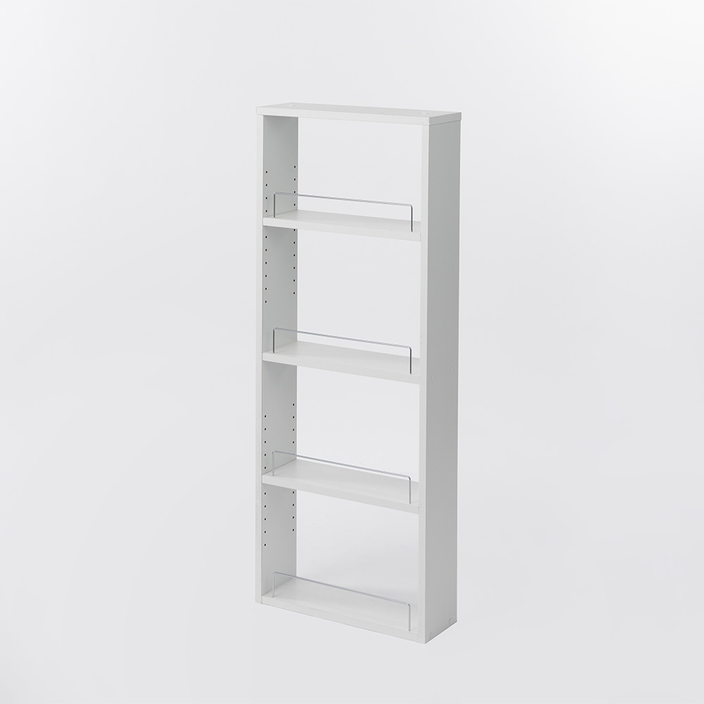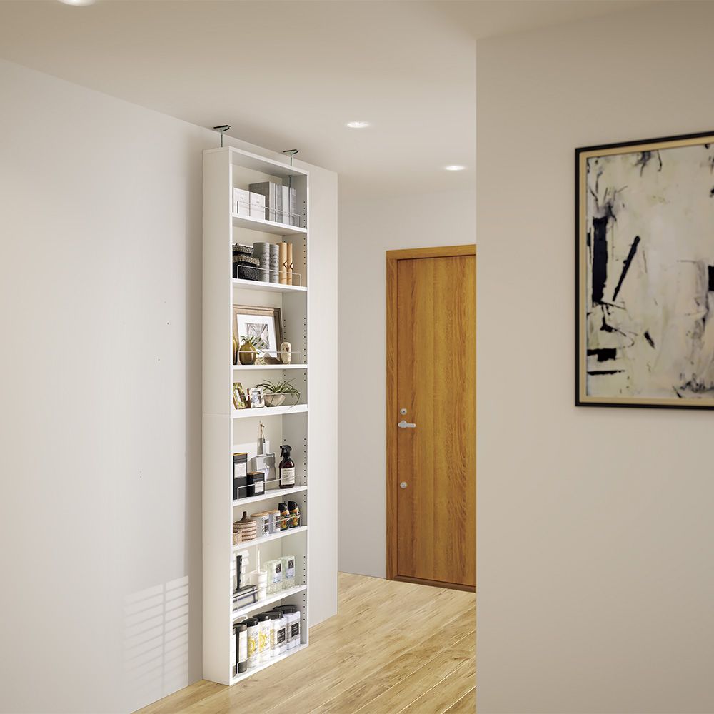 ●ドア横や廊下、洗面台の後ろの壁面など、これまで家具が置けなかった場所にわずかな奥行を利用して設置できるラックです。●扉がないので開閉のスペースをとらず、狭い場所に置いても生活動線を妨げません。