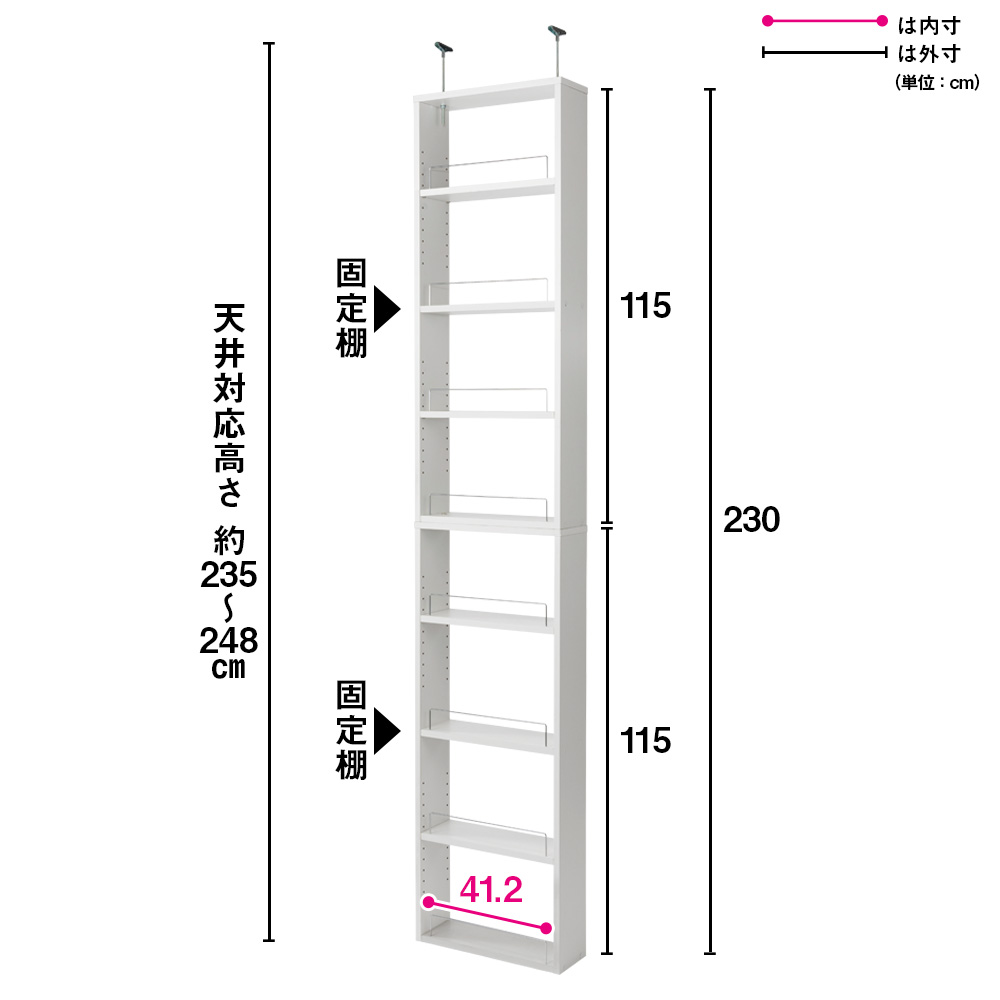■サイズ:幅45cm奥行15cm高さ230cm、天井対応高さ235~248cm・重さ約17kg