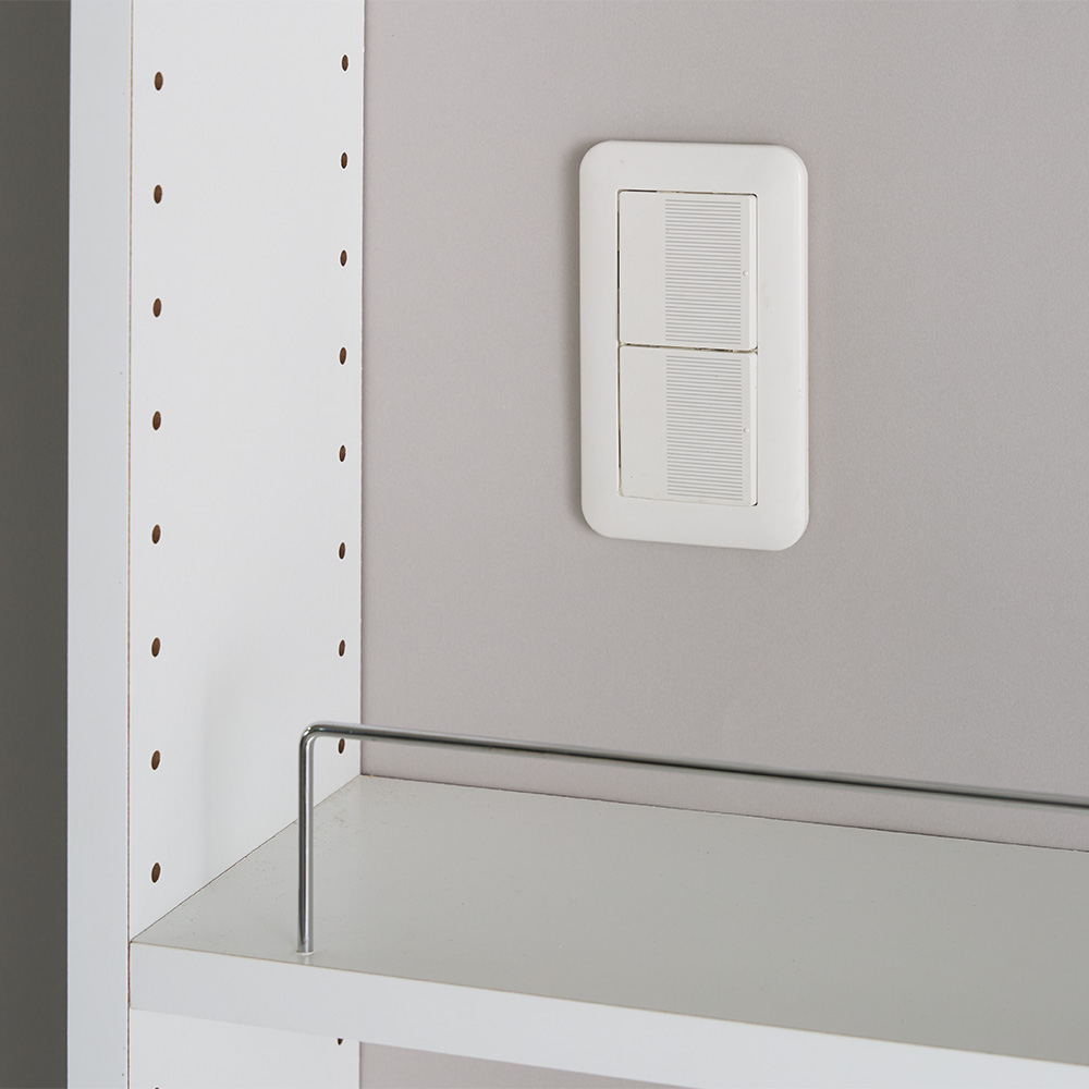 背板が無いので壁のスイッチやコンセントを避けて棚板が取り付けられます。