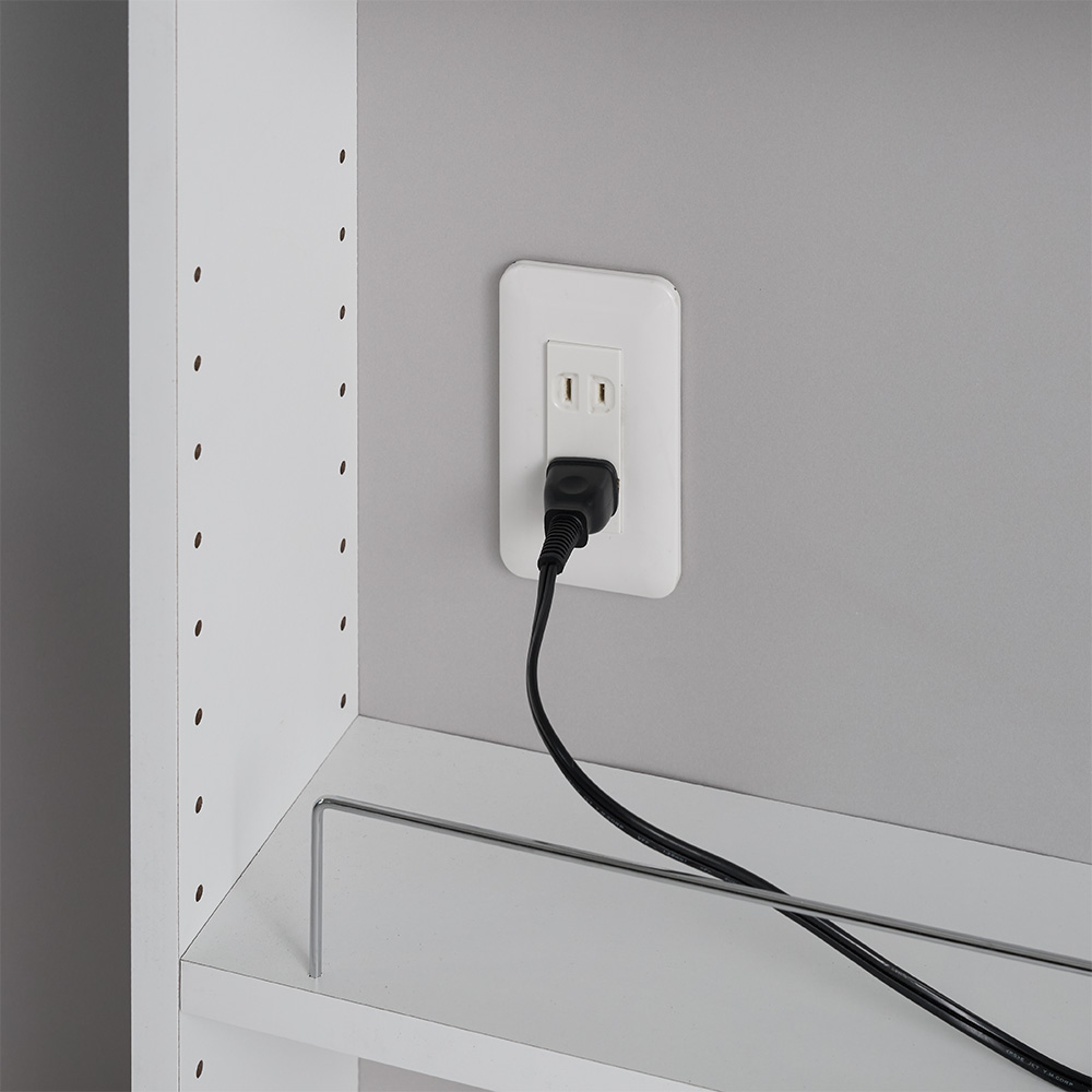 ●棚板の奥行をフルに活かせるよう、あえて背板を付けない設計で収納効率をアップ。●背板がないので、壁にスイッチや配電盤、コンセントなどがある場所にも設置できます。