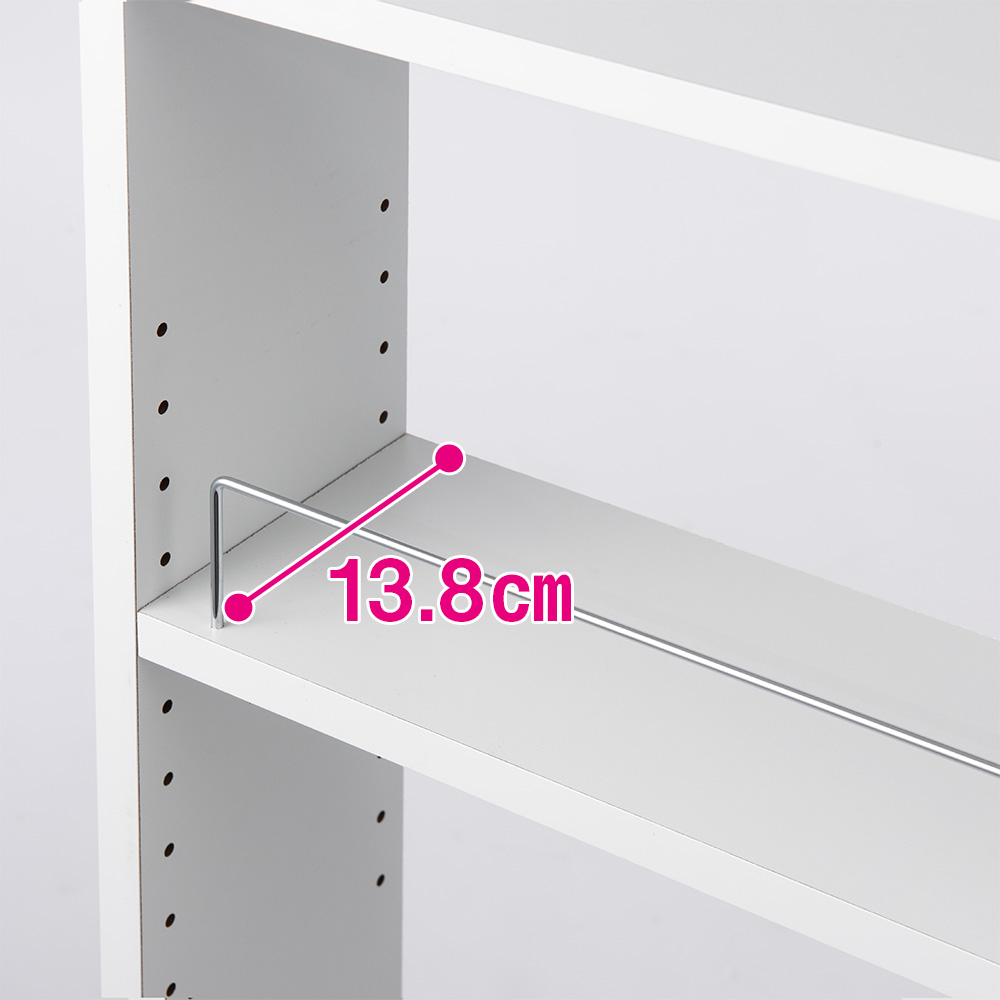 ●棚板のうち4枚は可動棚で、収納物に合わせて3cm単位で高さ調節できます。●すべての棚板に高さ6cmのこぼれ止め付き。(こぼれ止め使用時の棚板有効奥行内寸は13.8cm)