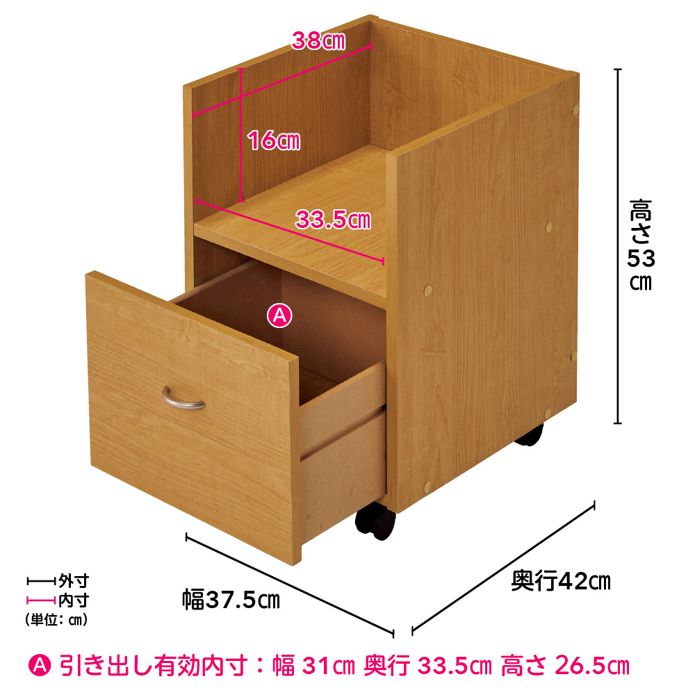 ワゴン詳細サイズ(単位:cm) (ア)ナチュラル