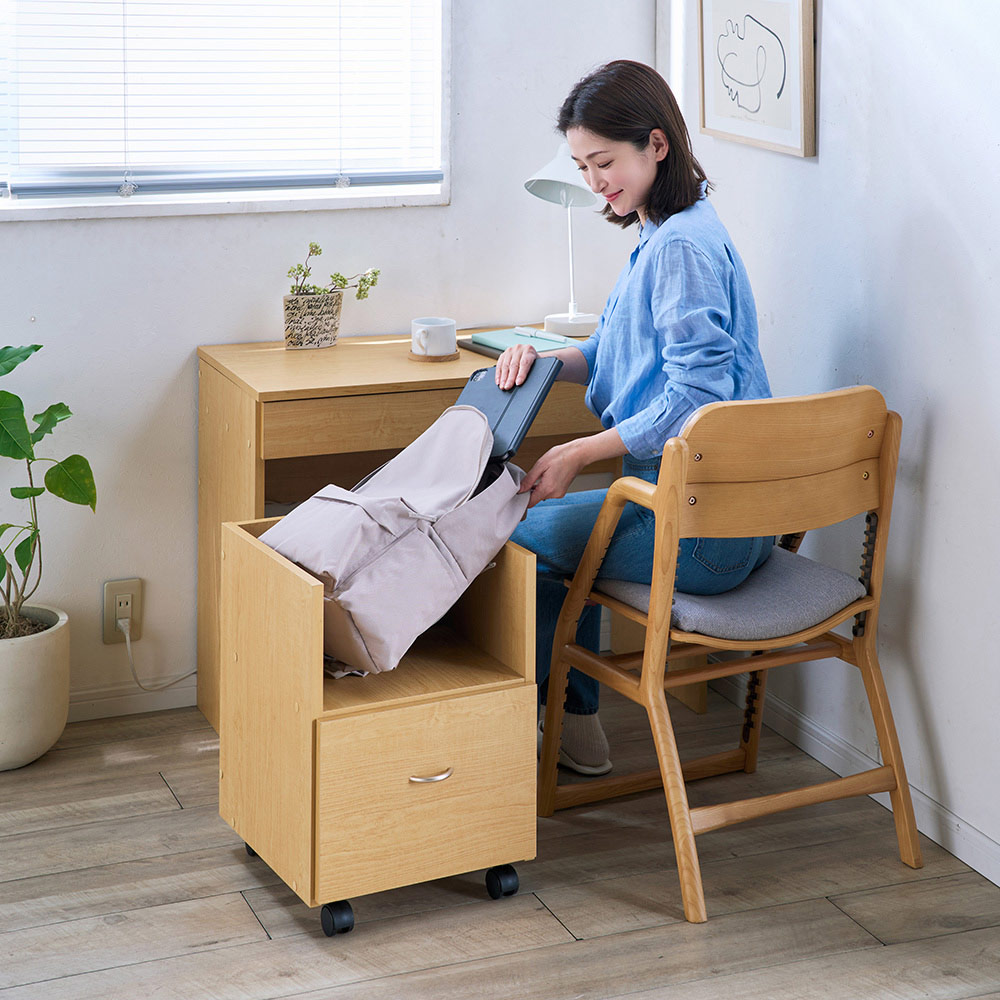 (ア)ナチュラル 使いやすいワゴンも付いていて、国産品ながら驚きのハイコスパ! ※チェアは別売りの「家族で使える頭のいい子を目指すチェア」を使用しています。