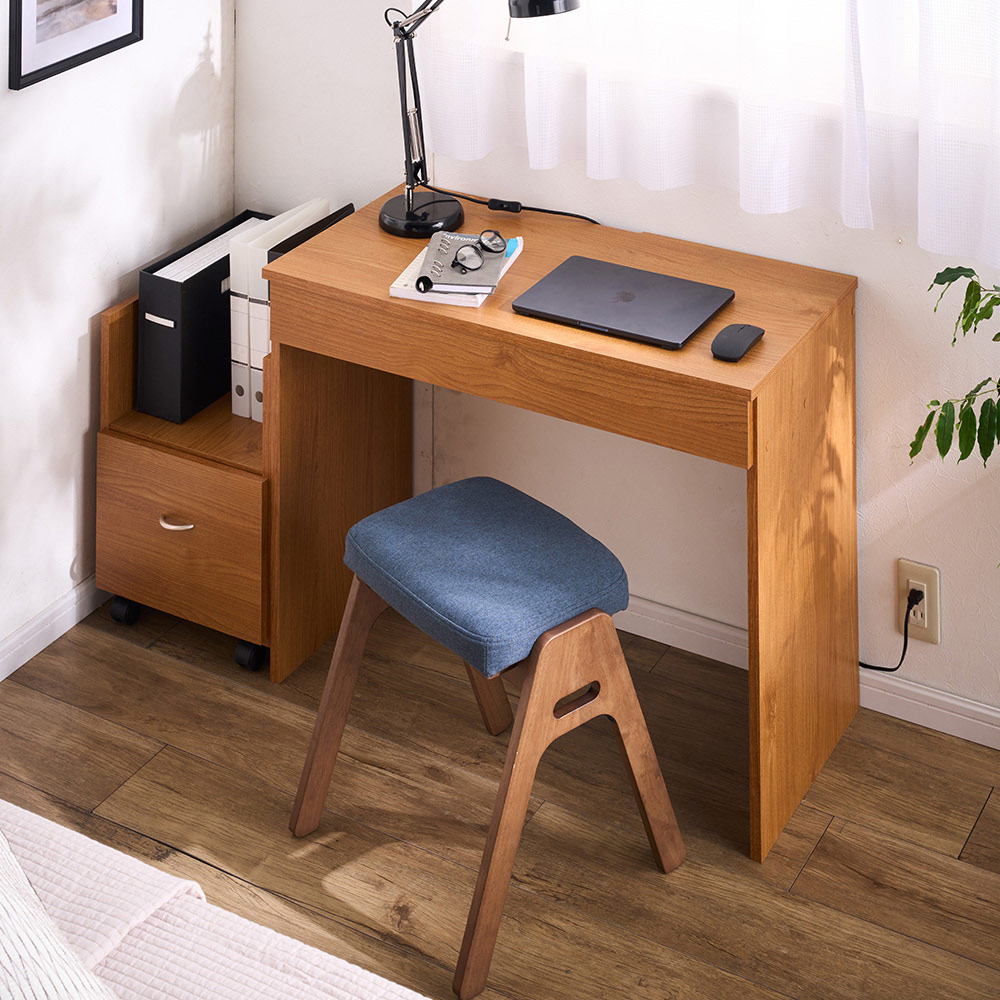 (イ)ミディアムブラウン 無駄の無いシンプルなデザインで、置く場所を選びません。書斎がなくても寝室やリビングの片隅に置けます。 ※チェアは別売りのスタッキングスツールを使用しています。