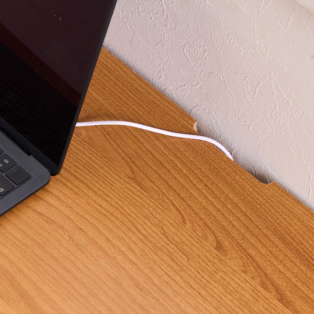 右下:天板を壁にぴったりつけて置いても側板と壁には約1cmのすき間があり、幅木避けやコードを通すのに便利です。
