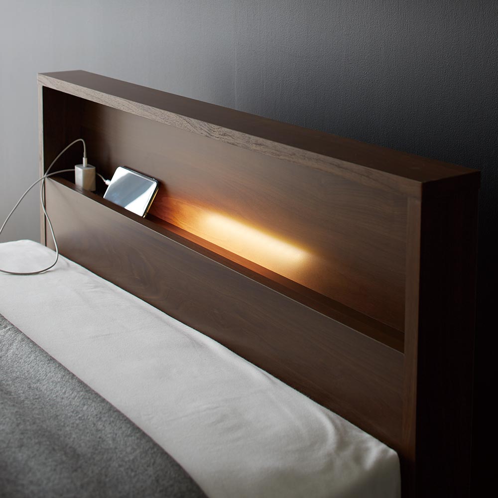 ・枕元でスマートフォンなどの充電に便利な1口コンセント付き。安全なホコリ防止シャッター付き。