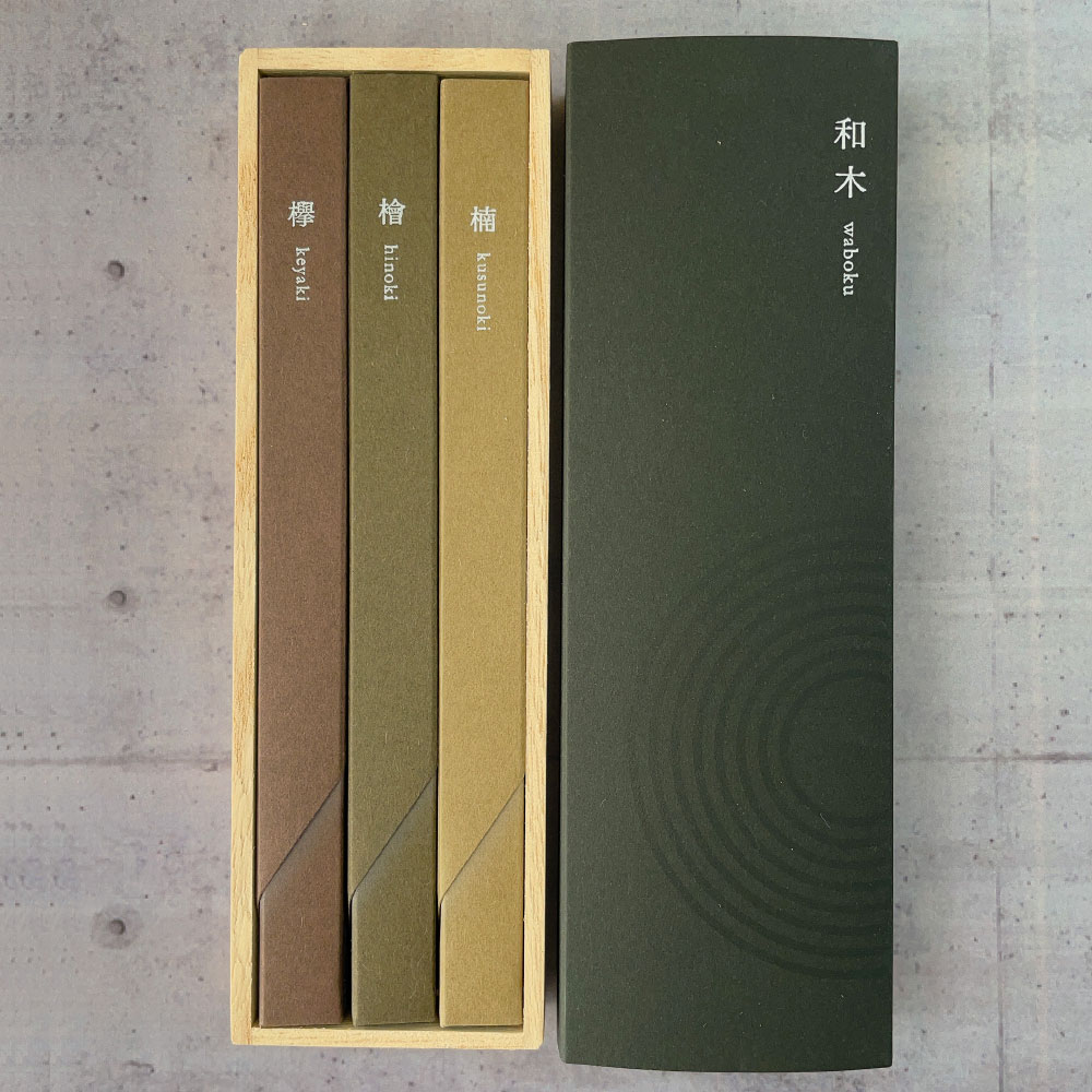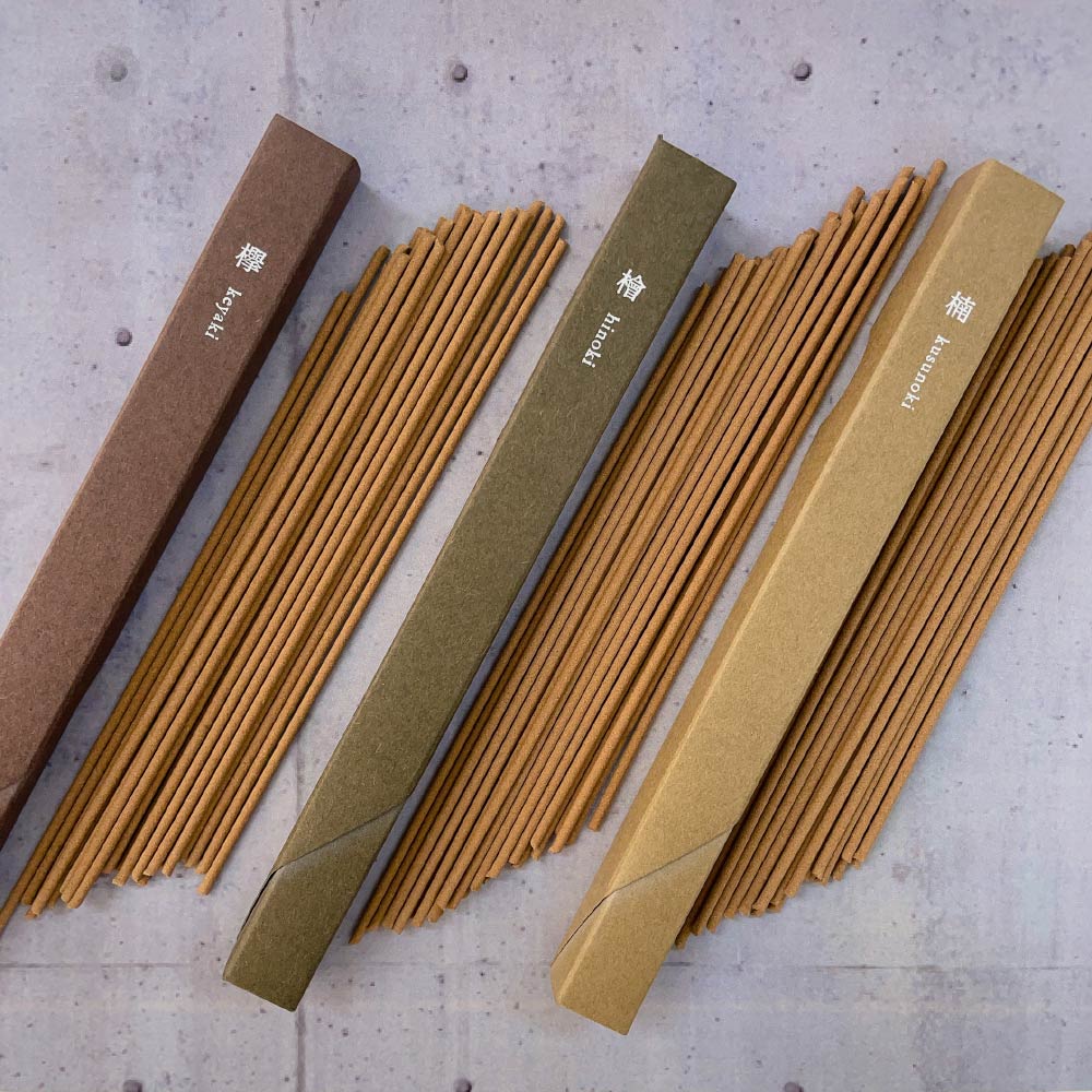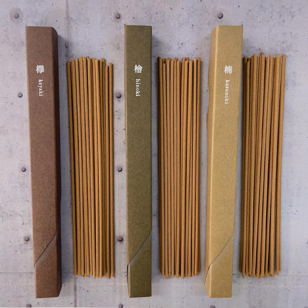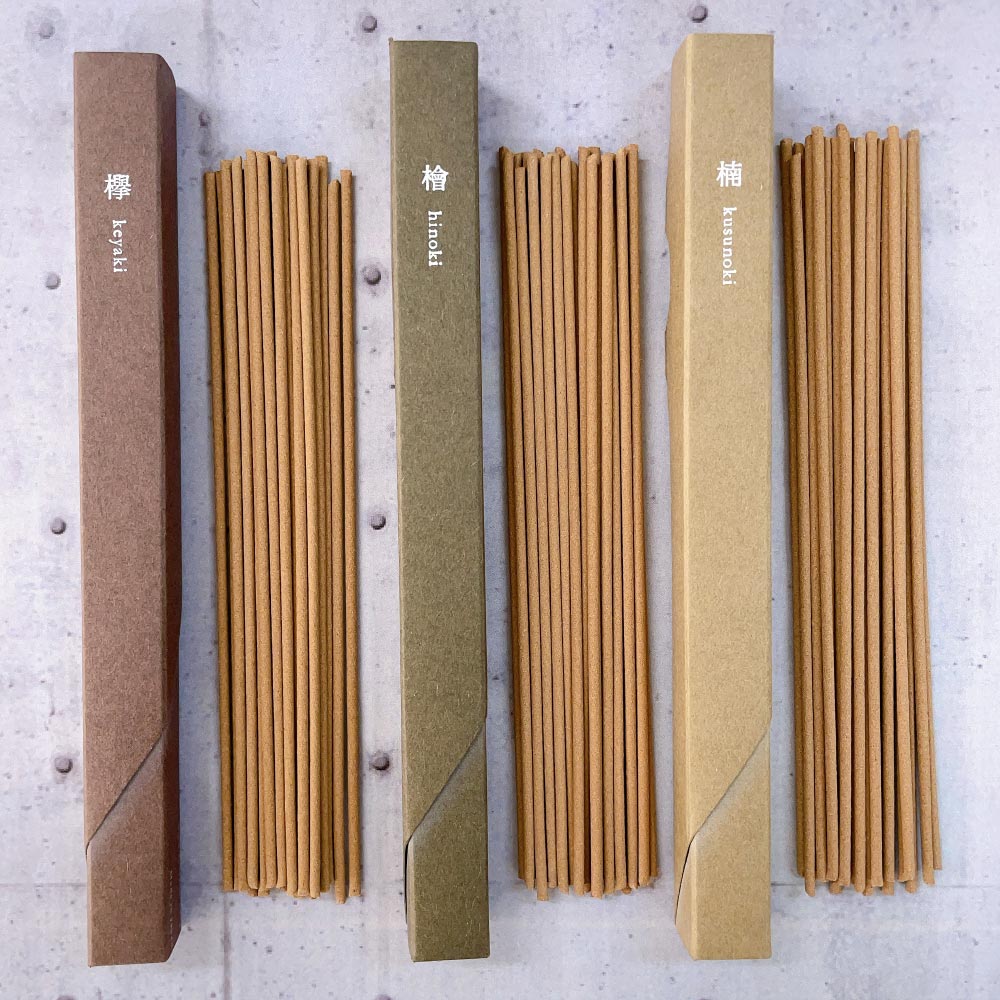 ■セット内容:お香(約13.3cm、1束各25本入)全3種(檜(ひのき)、欅(けやき)、楠(くすのき))各1箱入り