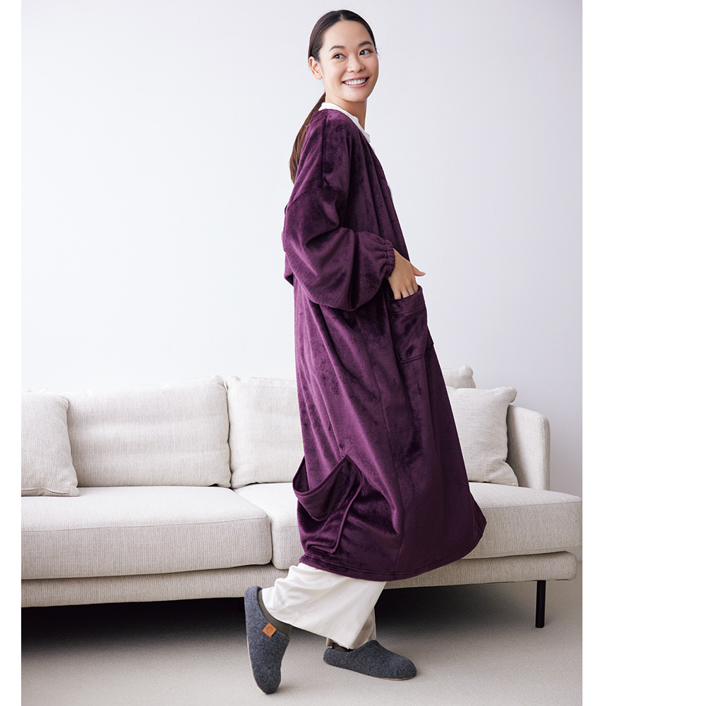 なめらかなミンクフリース素材を、足元までのロング丈に仕立てました。