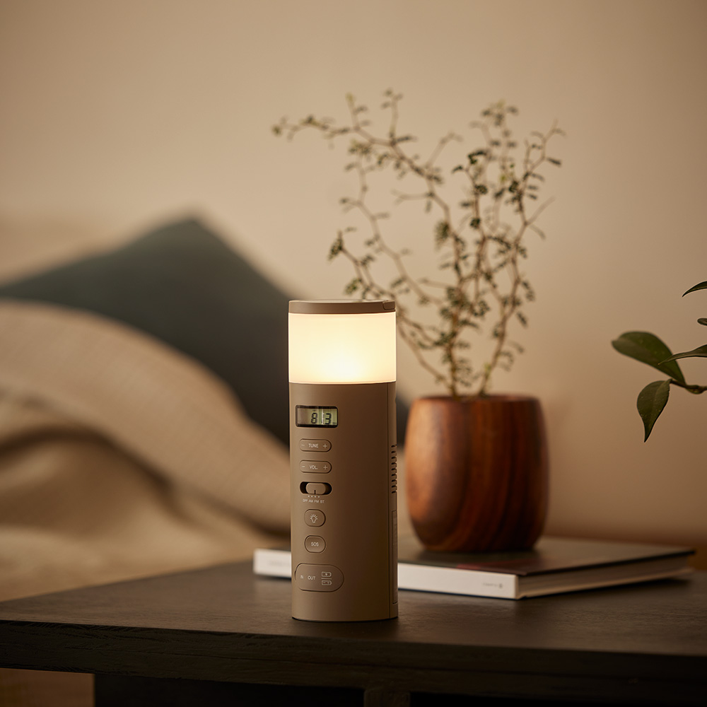 ラジオはもちろん、LEDランタンやスピーカーとしても使える1台5役。緊急時に備えてベッドサイドに置いておけば、いつもは読書灯にしたり、寝る前にラジオを流したり、Bluetoothスピーカーで音楽を流したりと、マルチに活躍します。