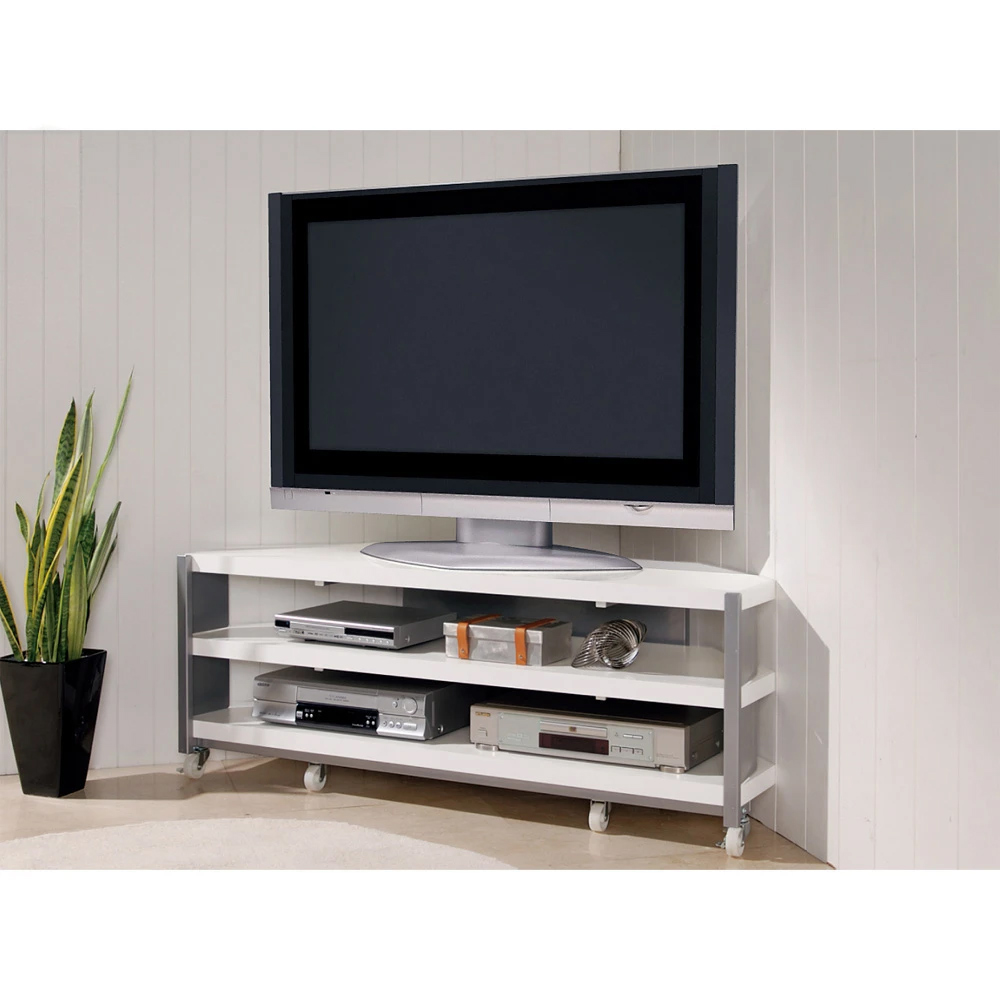 (イ)ホワイト×シルバー ※お届けはコーナー用テレビ台のみとなります。突っ張り式ラックは別売となります。