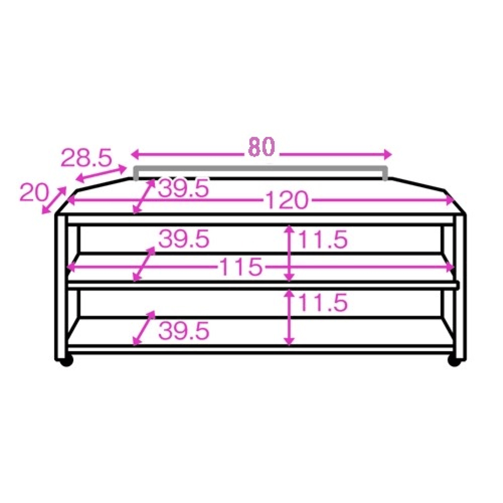 コーナーテレビ台(上棚なし) 幅120cm オープンタイプ キャスター付き コーナーテレビ台 テレビ台 テレビボード 628508