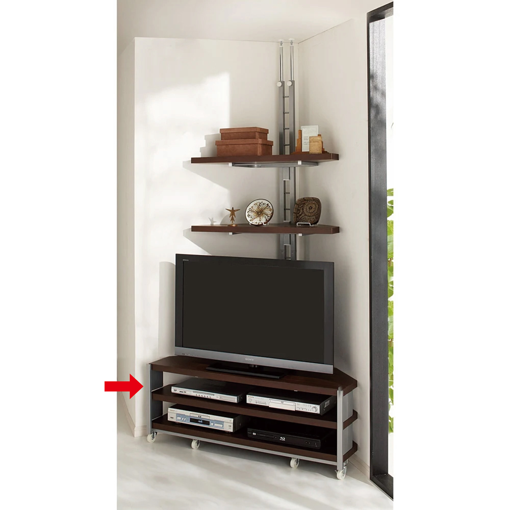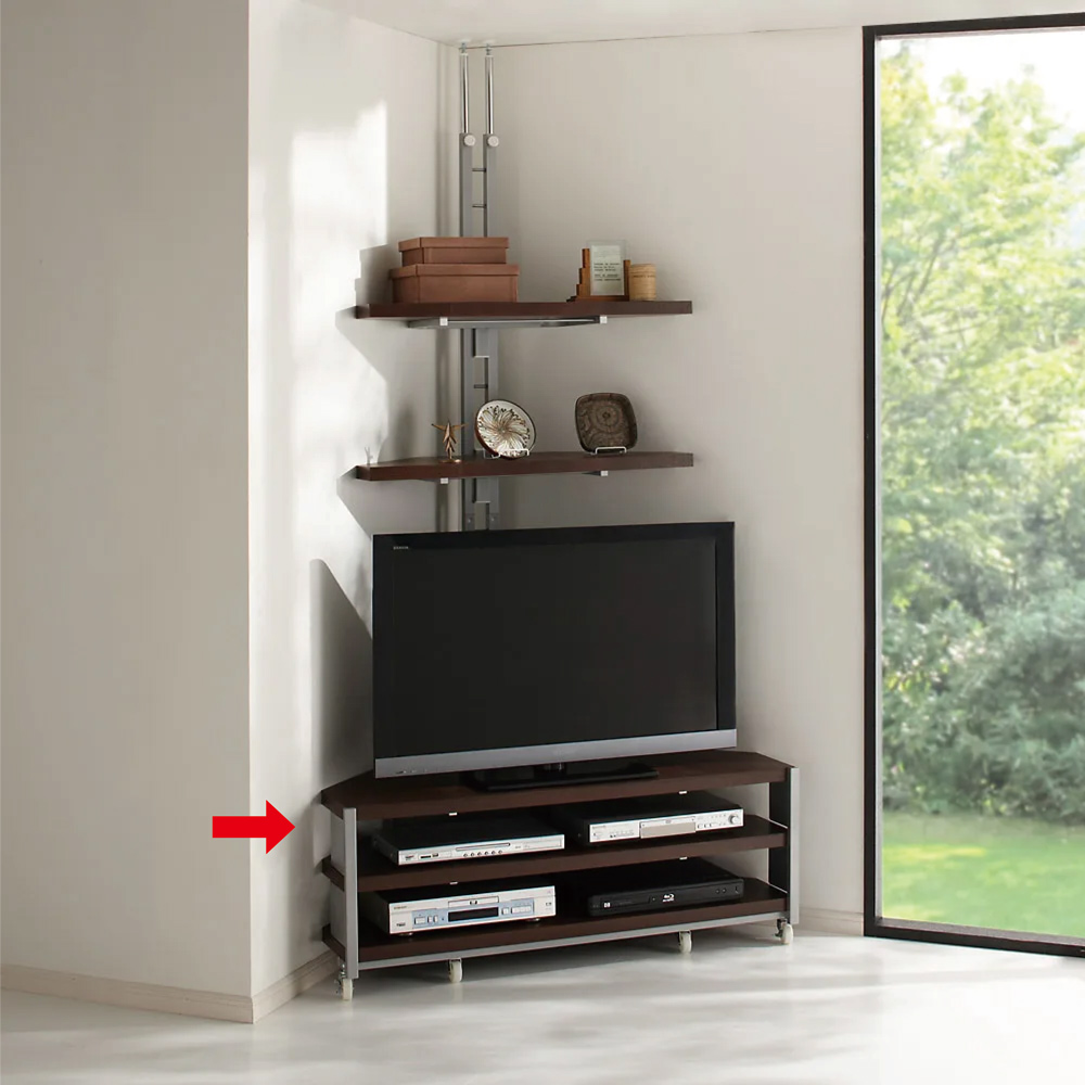(ウ)ダークブラウン×シルバー ※お届けはコーナー用テレビ台のみとなります。突っ張り式ラックは別売となります。
