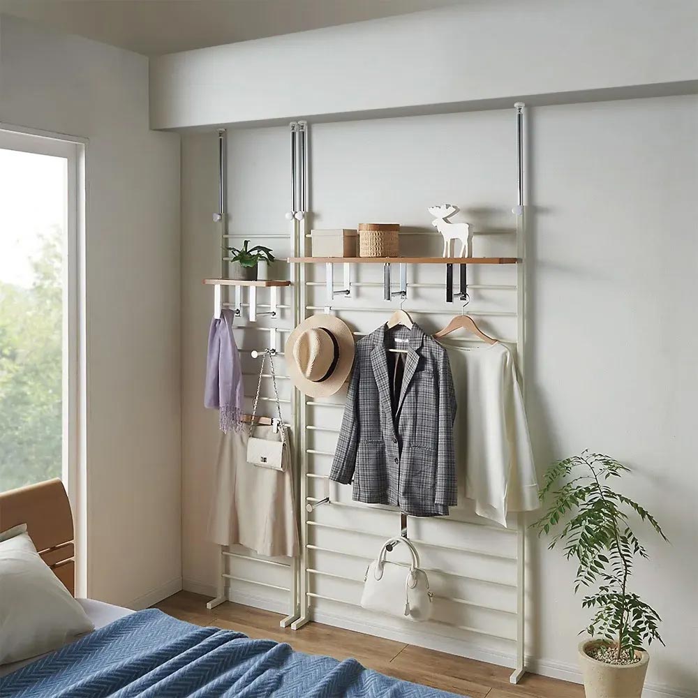 取り付け位置が自由に変えられるL字フック。バッグや帽子、ストール等の小物をかけておくのに便利です。L字フックは、幅40cmは1個、65cmは2個、95cmと125cmは3個付属です。