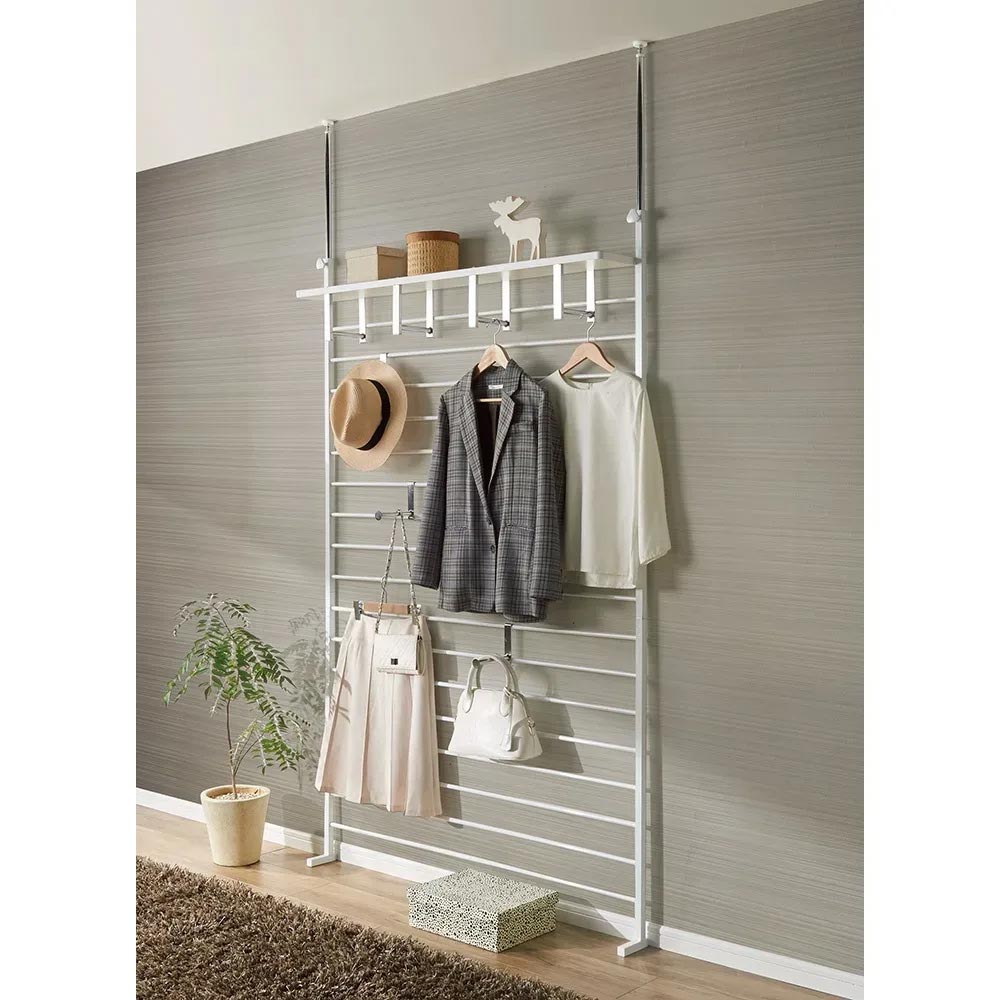 ご自宅の「壁」を使い勝手のいい収納空間に変える、壁面収納ハンガー「ブティックハンガーシリーズ」。タンスに収納する前のちょいがけハンガーとして、玄関に設置してコートハンガーとして、空いている壁を活用できます。幅は40cm・65cm・95cm・125cmから、スペースに合わせてお選びください。