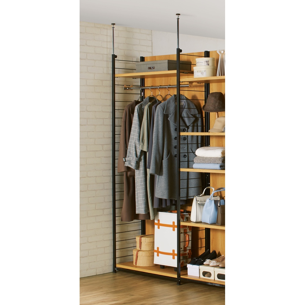 空間を間仕切りながら、大容量収納まで叶えてくれる間仕切り収納。寝室やリビングルームに置いても使いやすく、様になるクローゼットハンガーです。
