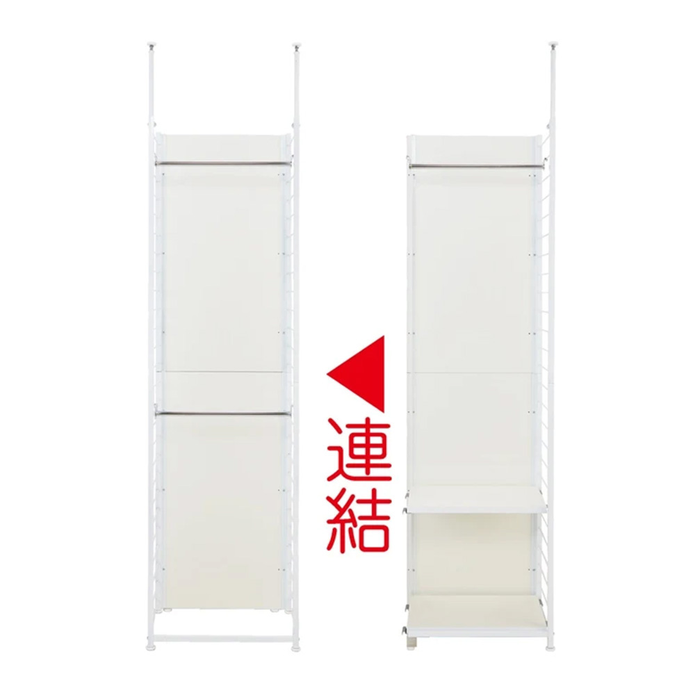 使用イメージ【裏:間仕切り面】 ※写真は別売りの「ハンガー&棚タイプ・幅90cm」「棚タイプ連結用・幅58cm」「ハンガー2段タイプ連結用・幅88cm」です。 ※写真は天井高さ240cm