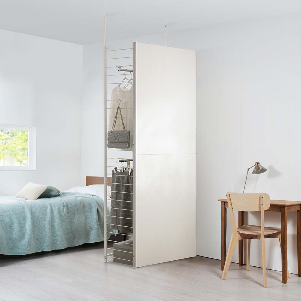 空間を間仕切りながら大容量収納まで叶えます。寝室やリビングルームに置いても使いやすいクローゼットハンガーです。限られたスペースを目的別に使い分けて、機能も居心地もアップ。