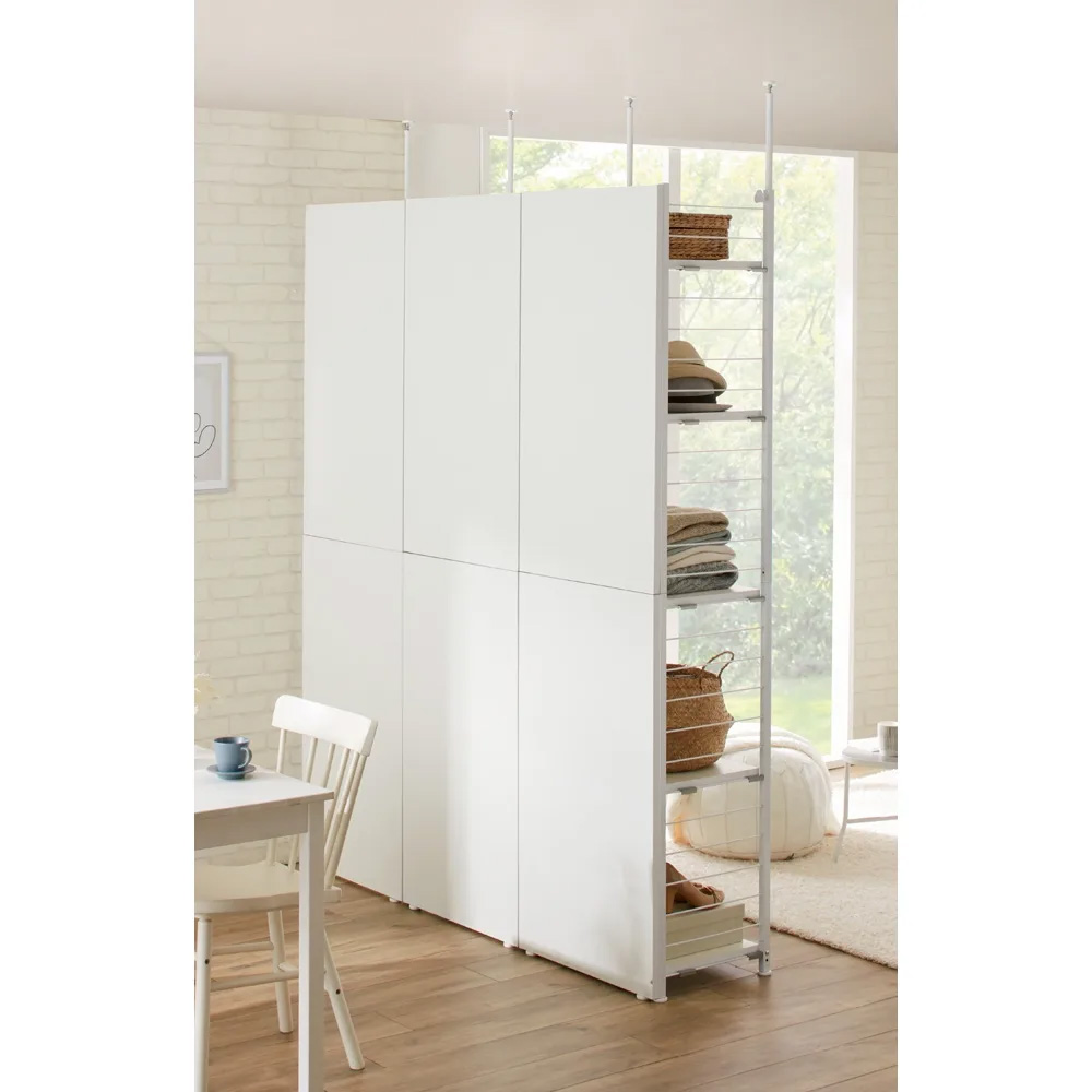コーディネート例【裏:間仕切り面】 ※お届けは「ハンガー&棚タイプ・幅90cm」です。写真は別売りの「棚タイプ連結用・幅58cm」「ハンガー2段タイプ連結用・幅88cm」との組み合わせです。 ※写真は天井高さ240cm