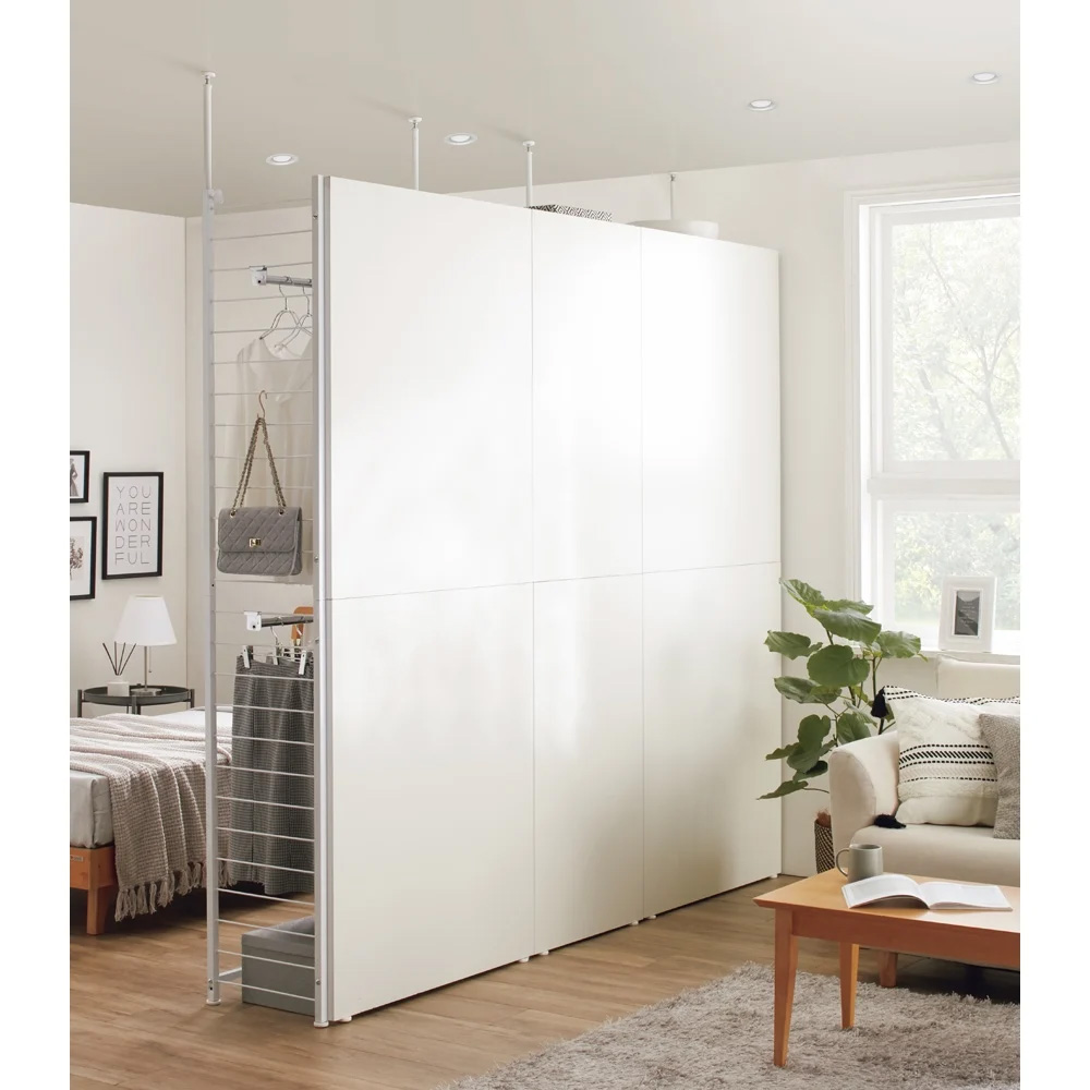 ホワイト間仕切り収納 ハンガー&棚タイプ 幅90cm パーテーション 間仕切り リビング収納 589739
