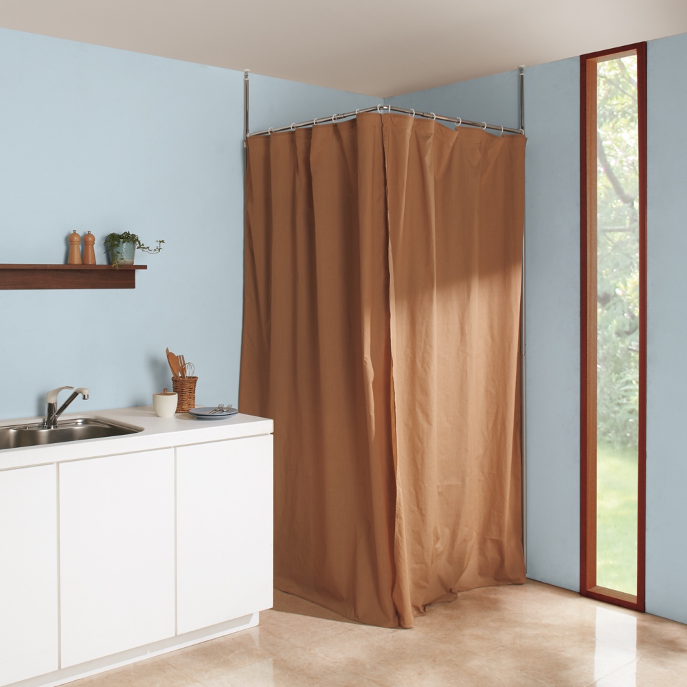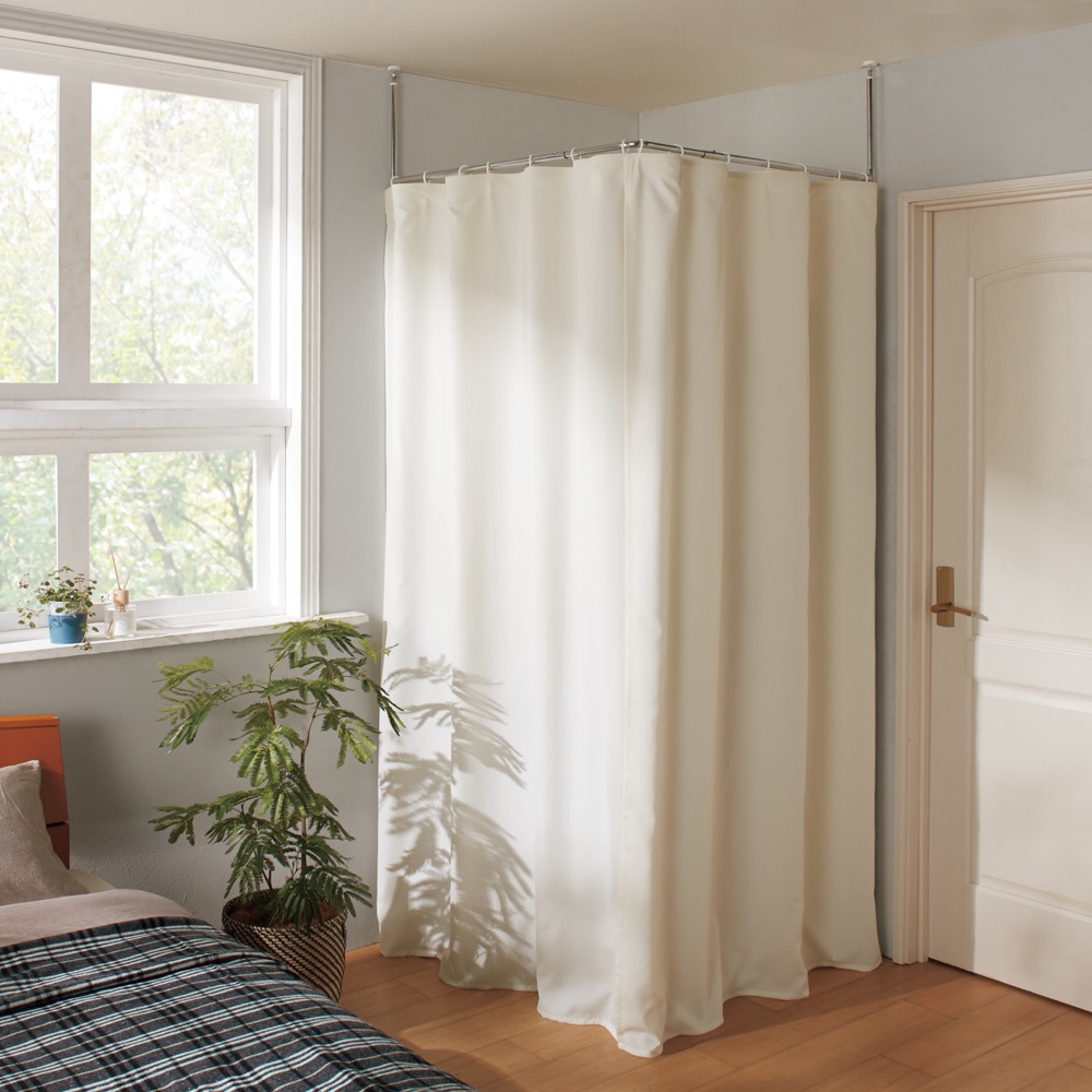 ●L字型のカーテンで、コーナーを目隠し出来る間仕切りです。●カーテンを開閉するだけの手軽さで、簡単に目隠しをすることが出来ます。