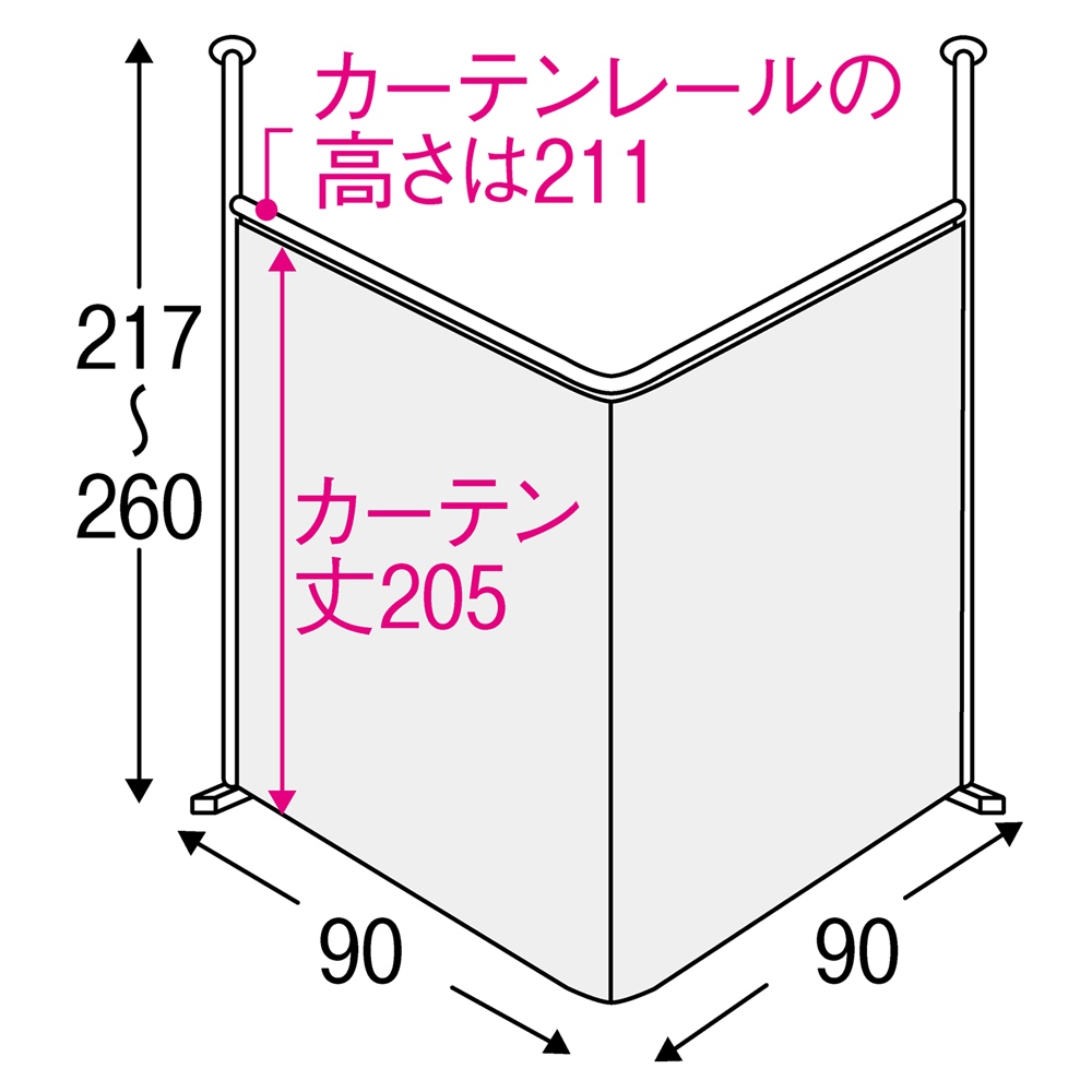 突っ張り式コーナー目隠しカーテン 間仕切りカーテン アコーディオンカーテン カーテン 632412