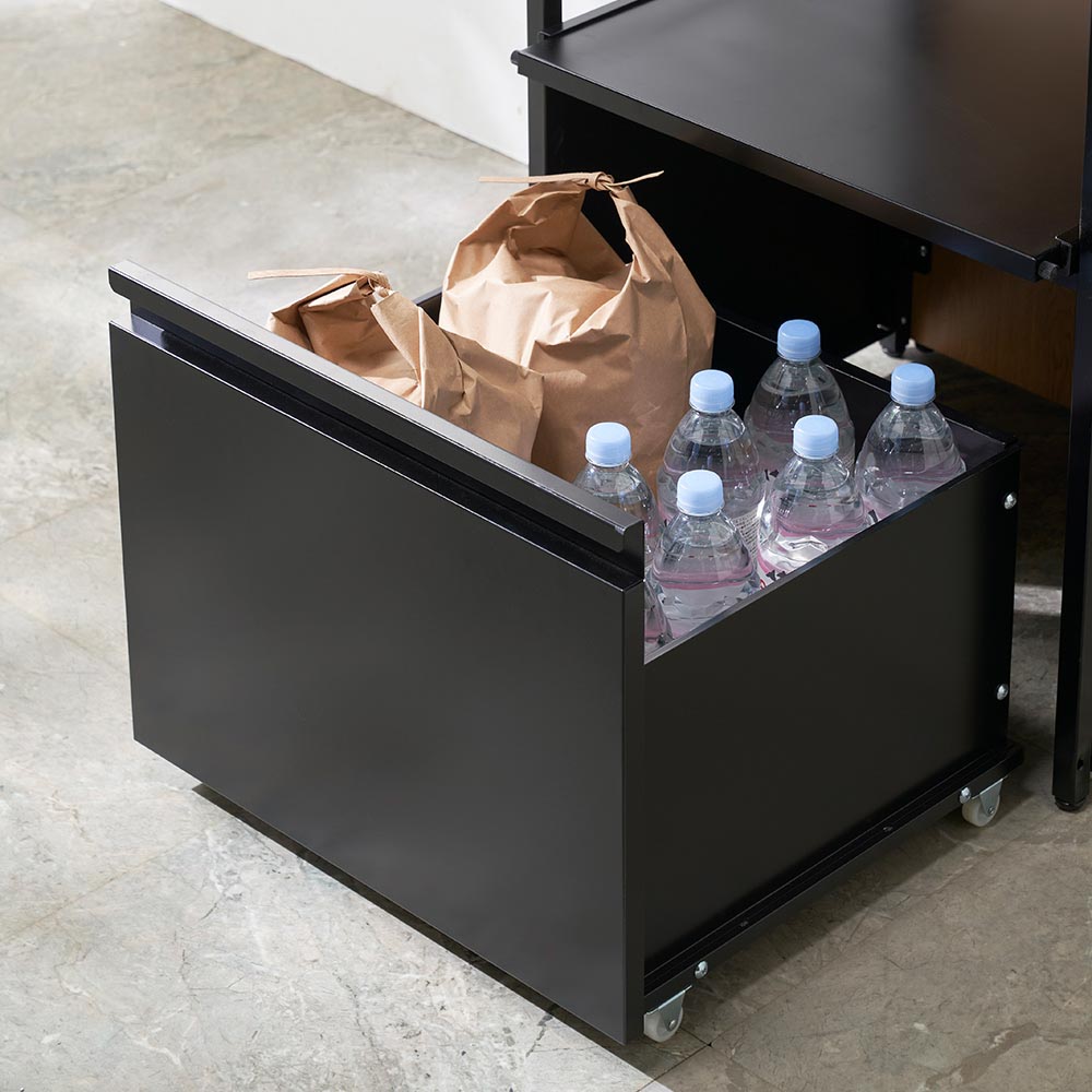 最下段の収納スタイルによって3つのタイプから選べます。ワゴンタイプは飲料水やお米など、重い物のストックに便利です。