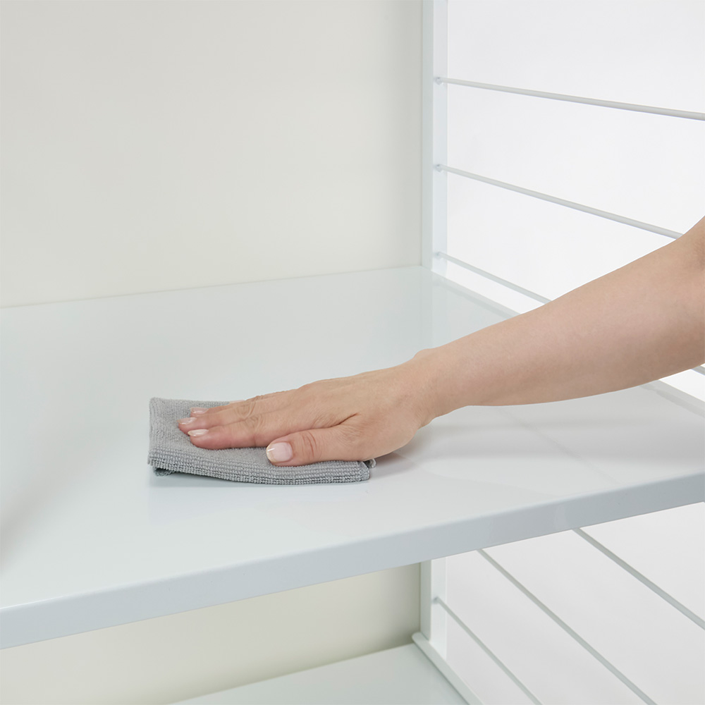 棚板はスチール製なので、水や汚れもさっと拭き取れます。