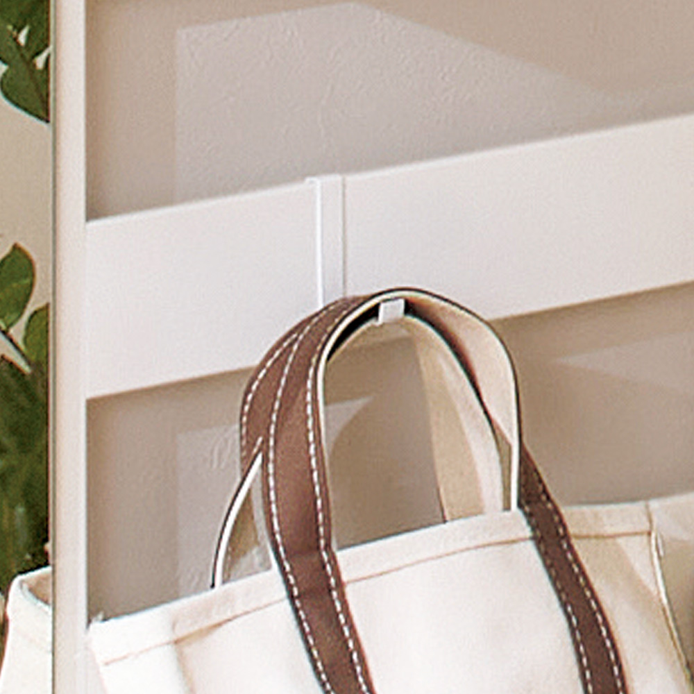 専用フックと小物用の棚付きラダーラック専用フック8個と小物が置けるトレー付き。角型なのでラダーに引っ掛けたときに安定感よく収まります。棚は鍵などの小物置きに便利です。