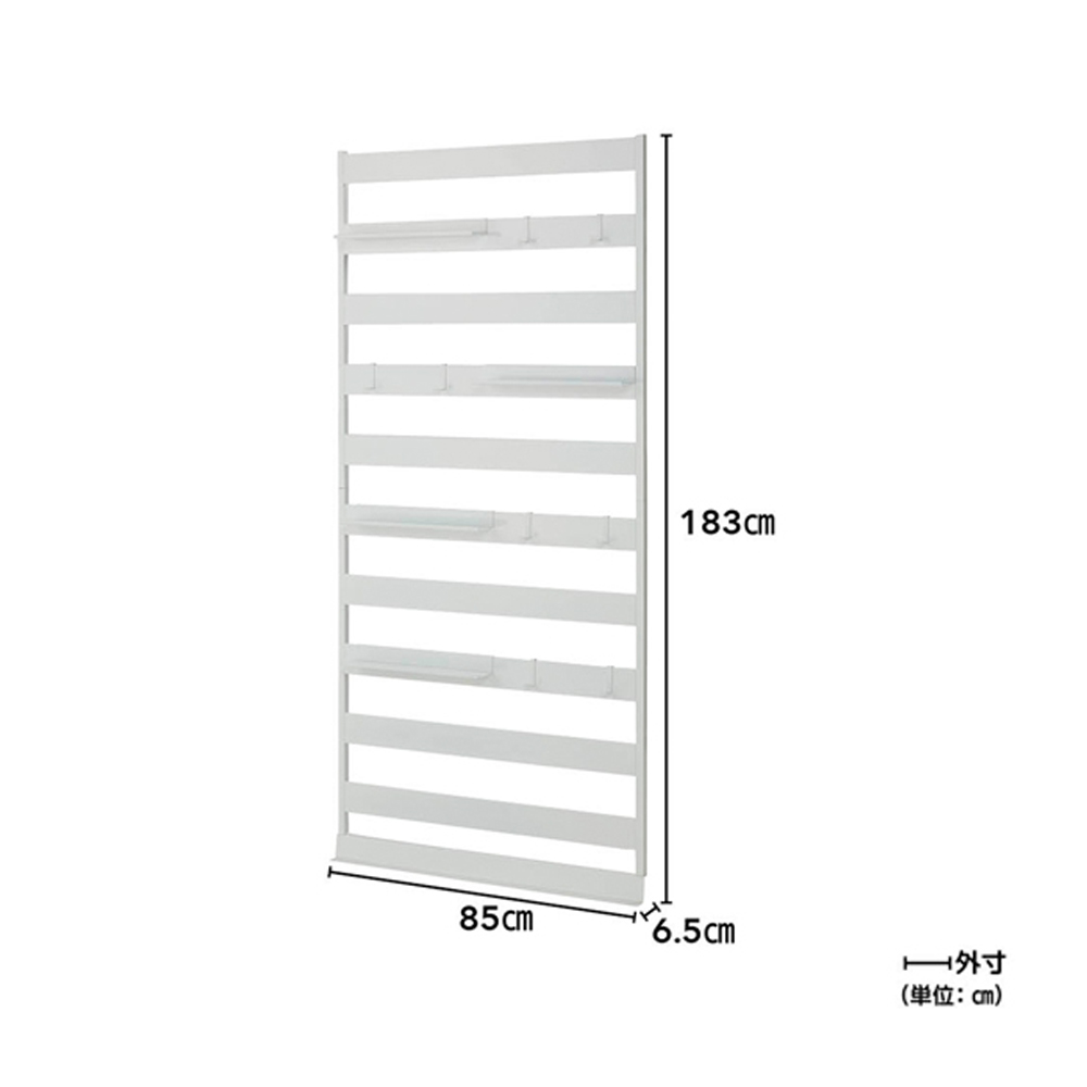 【幅85cmタイプ】幅85cm脚部奥行6.5cm(トレー含む奥行11cm)高さ183cm