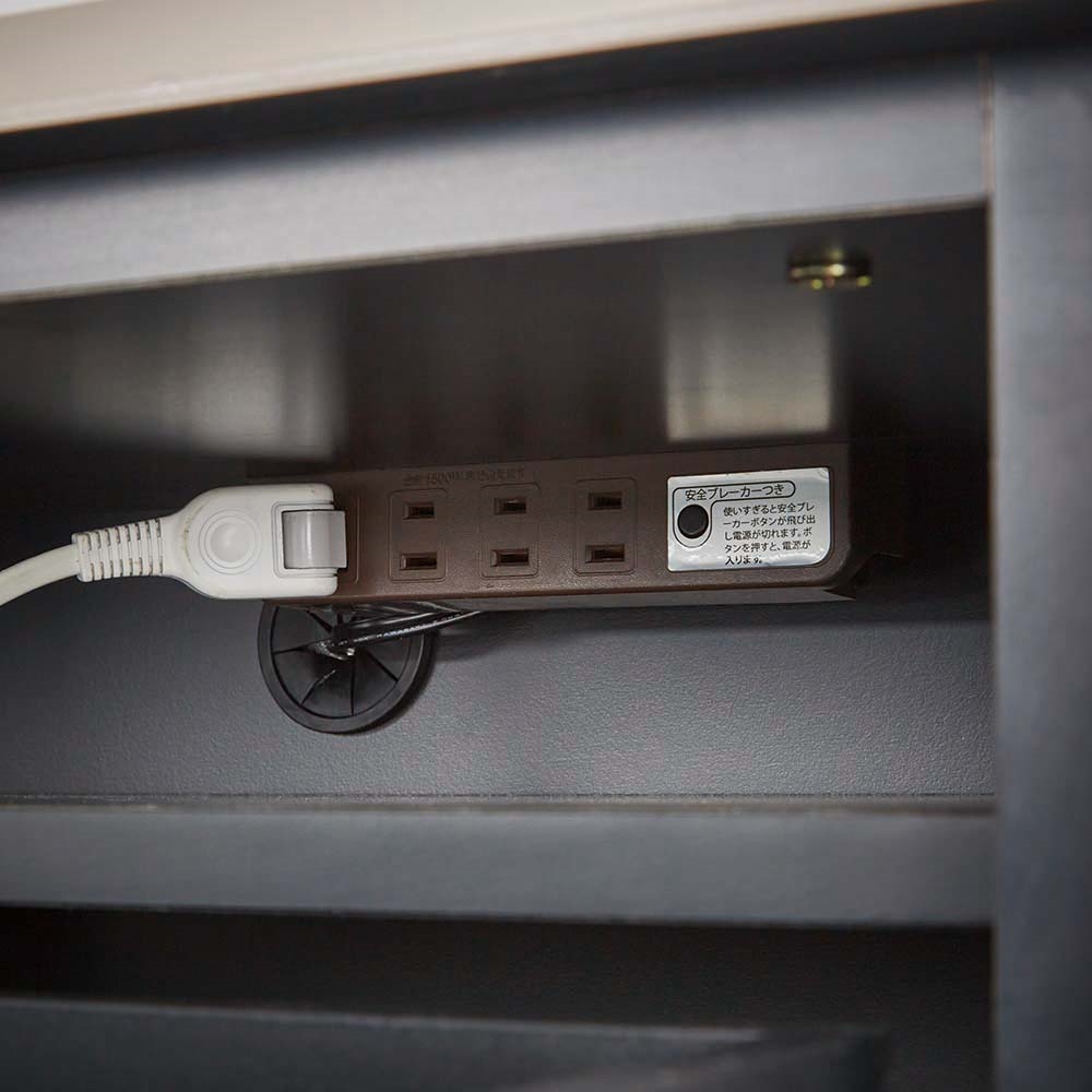 ■中央デッキ収納部には4口コンセント内蔵なので、配線を集約出来ます。