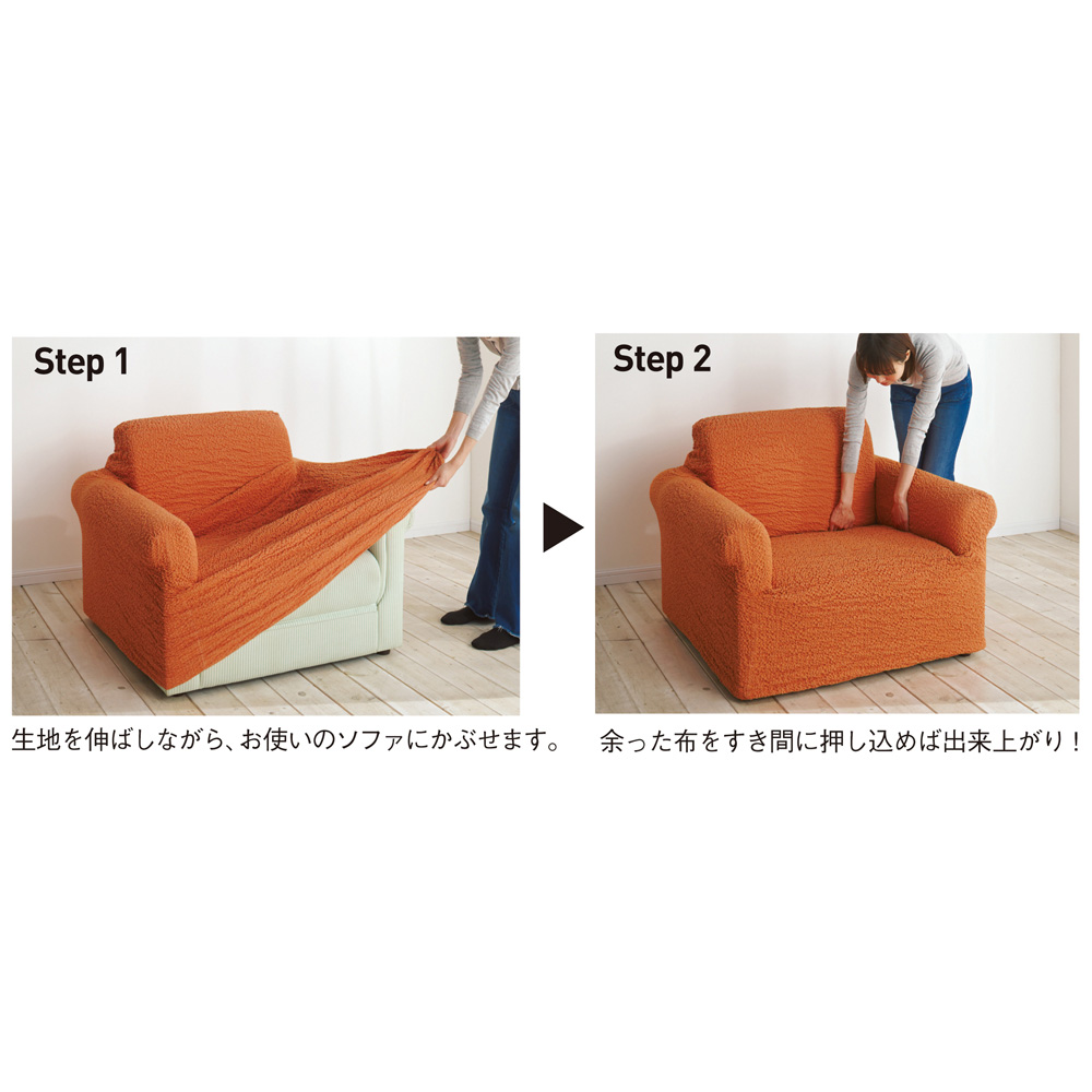お使いのソファにかぶせ、すき間に布を押し込めば出来上がり!簡単らくらく取り付けで、ソファの張地のようにぴたっとキレイにフィットし仕上がりもきれい。豊富なサイズ展開も自慢です。素肌にうれしい綿混素材