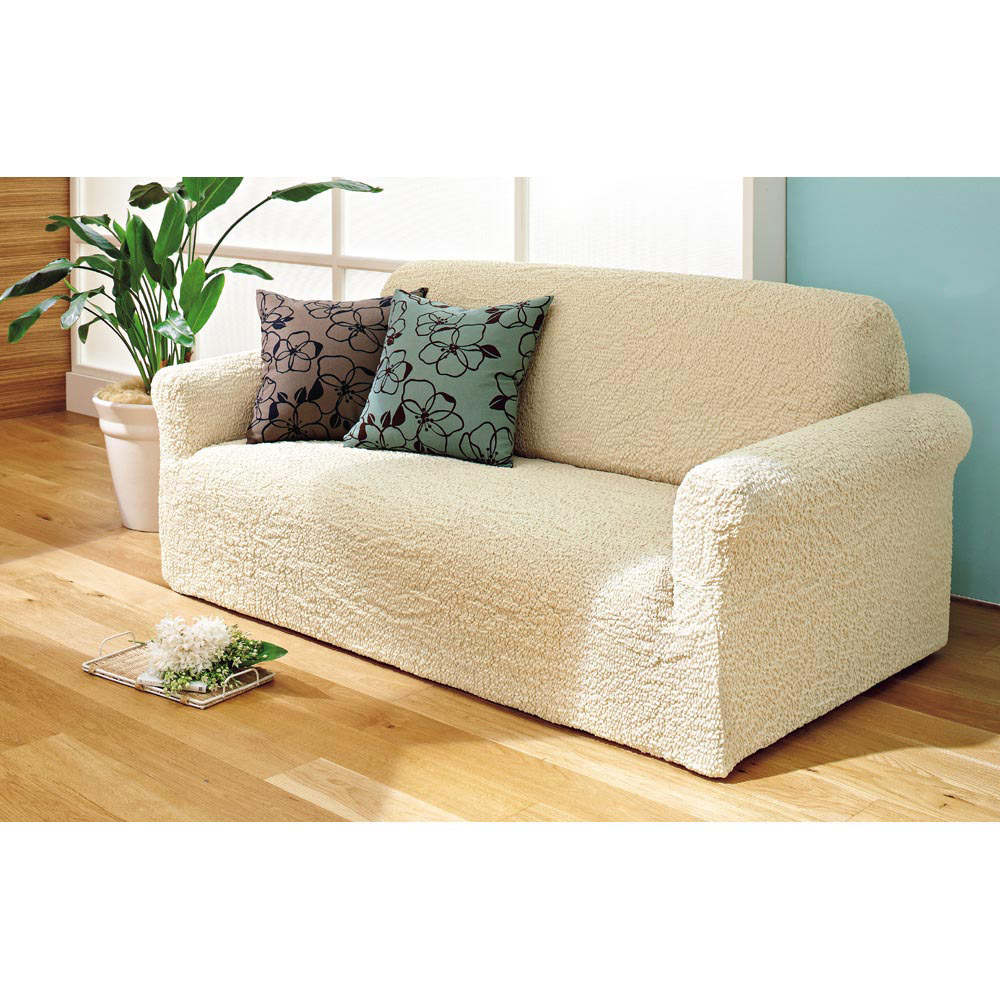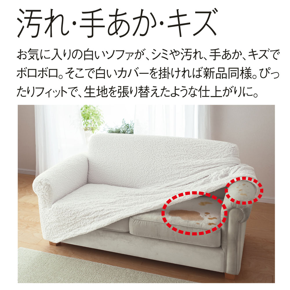 (シ)ホワイト ホワイトのソファカバーは、合わせる小物次第でナチュラルにもカラフルにもコーデ自在。インテリア全体のイメージも夏らしく軽やかに仕上がります。